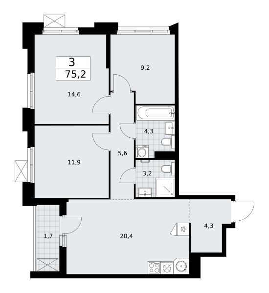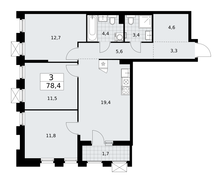 Купить 3к квартиру 90 м² в Возможна ипотека