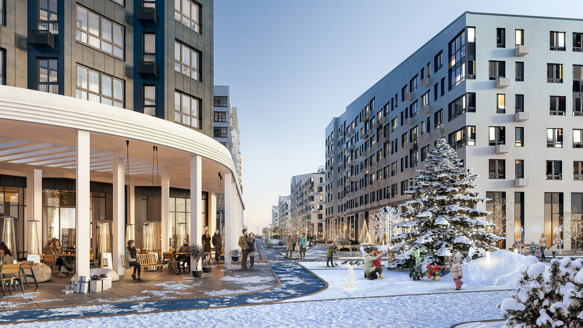 Масштабный проект комфорт класса, с просторными внутренними дворами, с наземным и подземным многоуровневым паркингом. С круглосуточным видеонаблюдением за территорией. На входе в подъезд, двойные панорамные стеклянные двери. В лобби отдельные помещения для хранения велосипедов и детских колясок, консьерж. На первых этажах домов коммерческие помещения различной площади, в которых располагаются магазины, офисы, кафе, рестораны, пекарня, отделения банков, аптека, медицинский центр, салон красоты, стоматология и прочее. Собственная школа и детский сад.