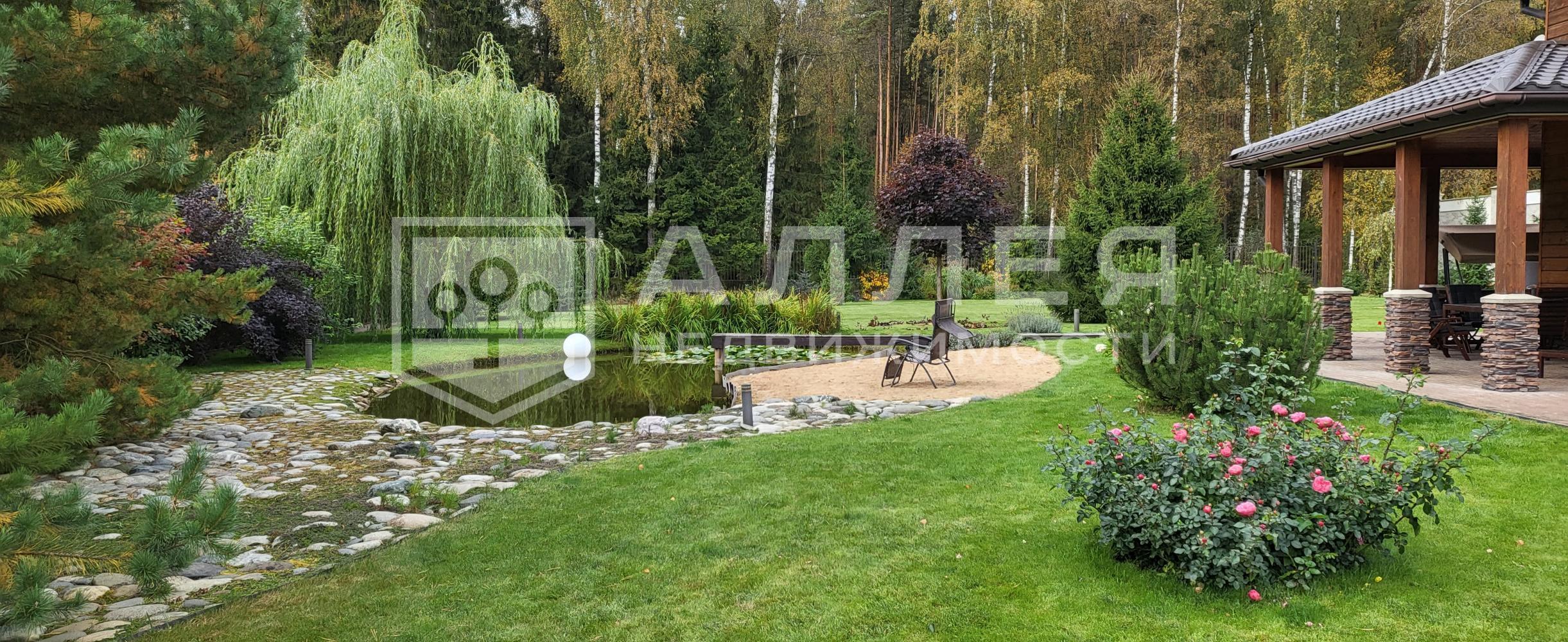 На участке выполнен ландшафт и автополив, имеется навес на 2 автомобиля. Удобное расположение дома в поселке рядом с парковой зоной.