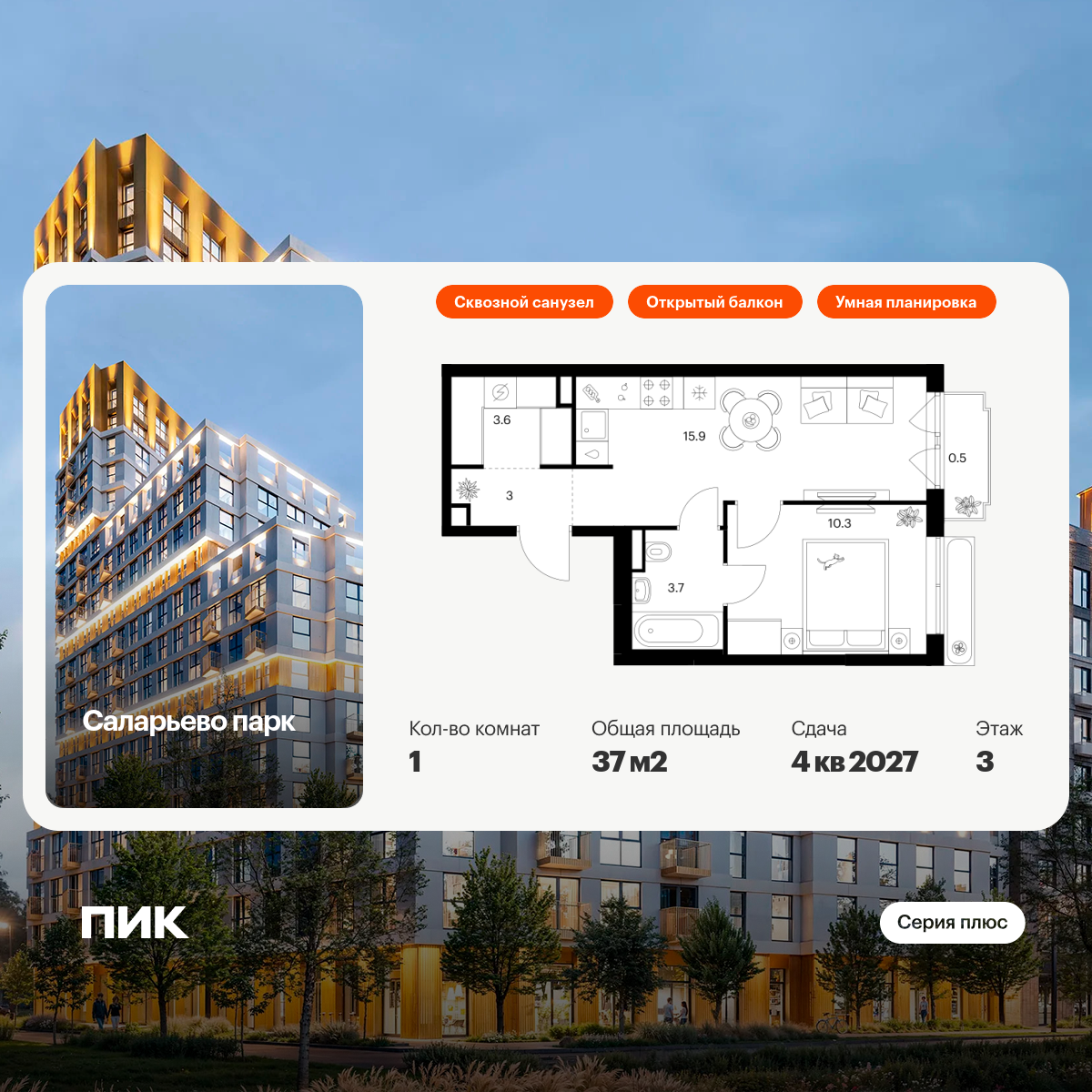 Продается студия площадью 31.9 кв.м. на 19-м этаже 33 этажного дома в ЖК "Мираполис" от ГК ОСНОВА.