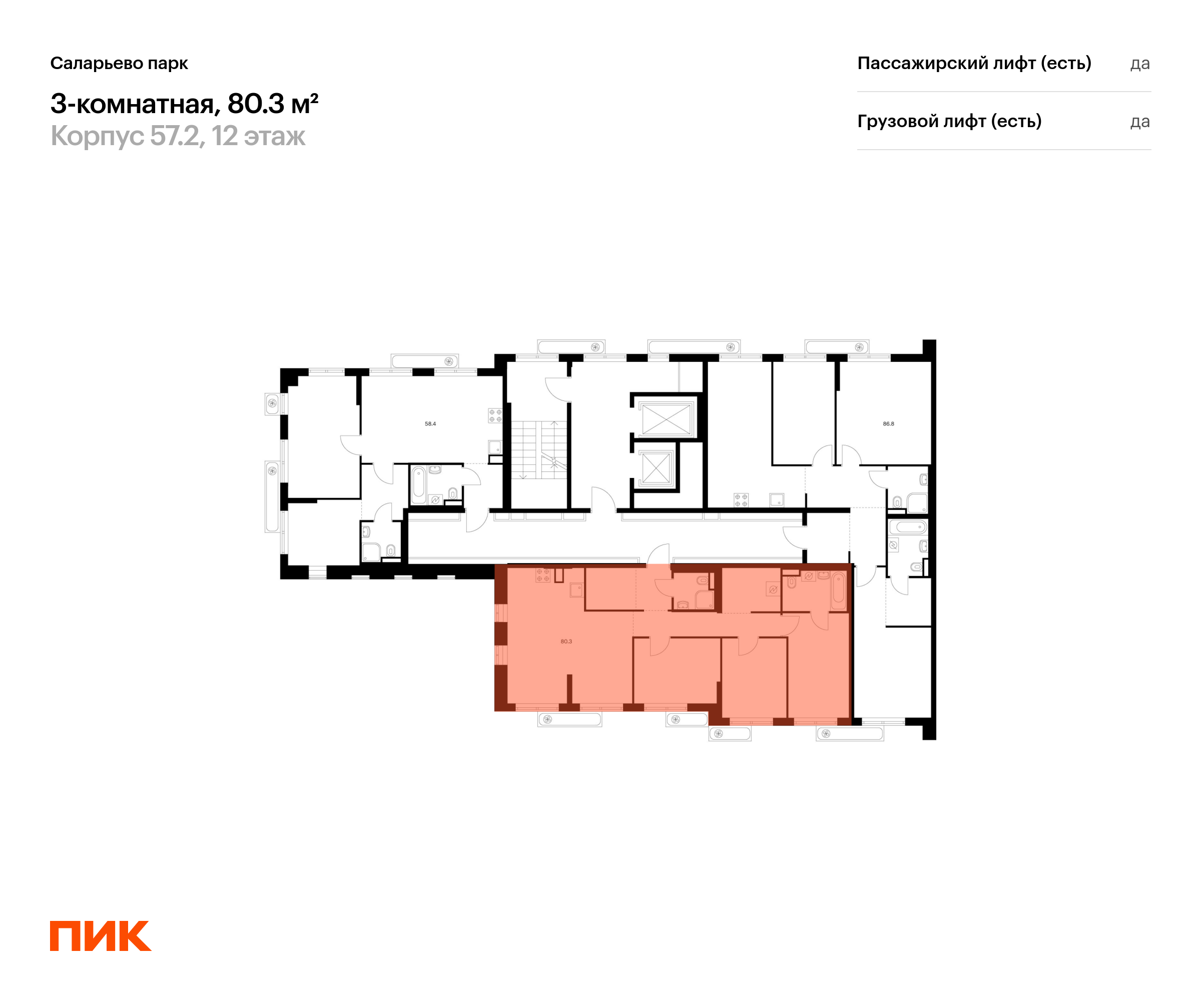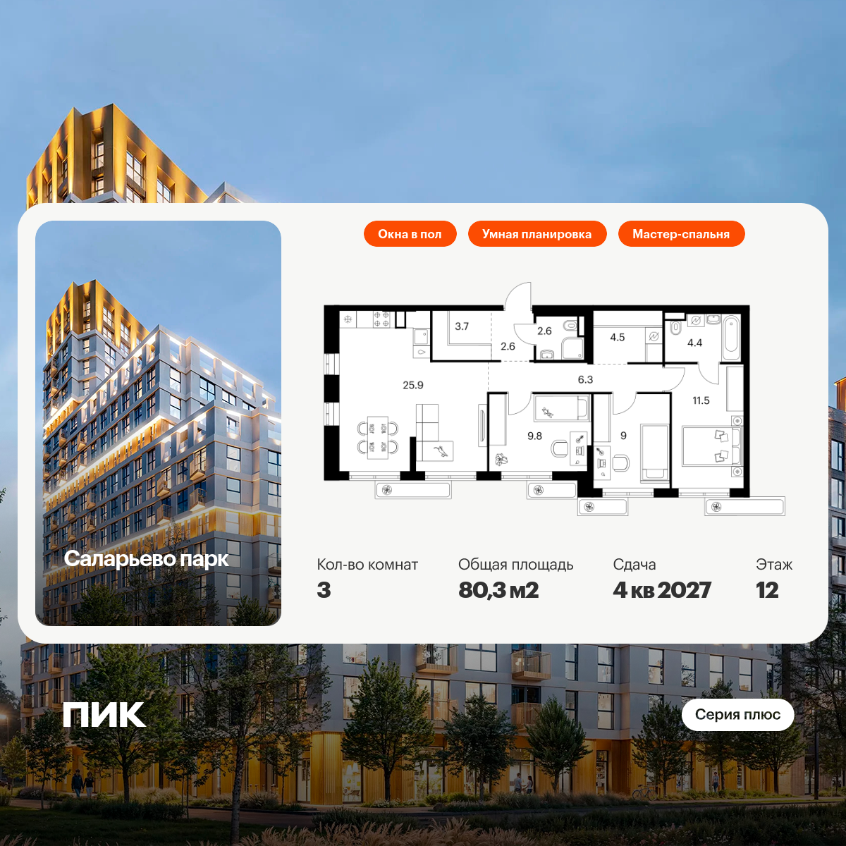Продаются 2-к апартаменты площадью 70.6 кв.м. на 13-м этаже 33 этажного дома в ЖК "Мираполис" от ГК ОСНОВА.