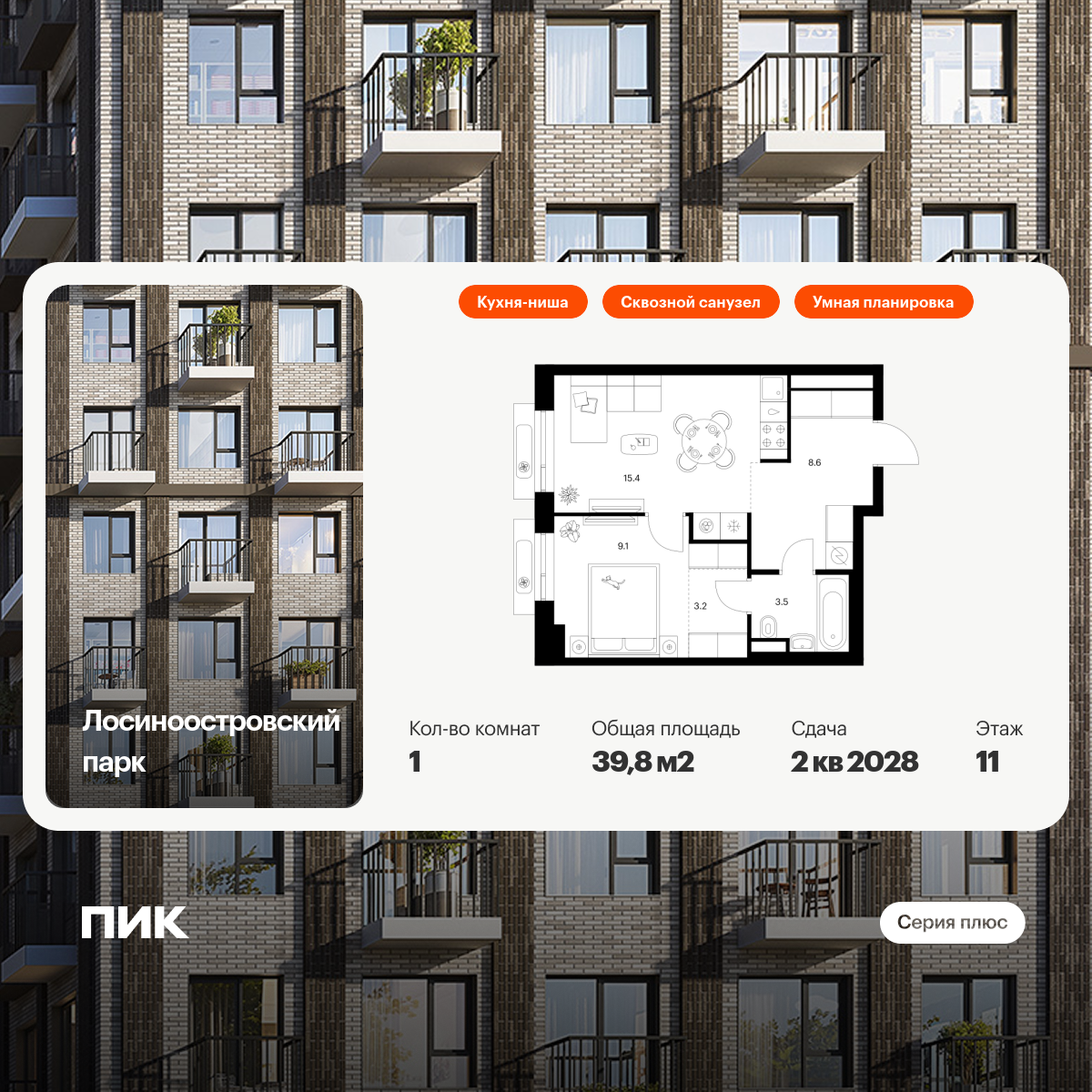 В квартирах продуман каждый метр — мы детально просчитываем все возможные сценарии и способы использовать пространство. Например, большой семье подойдёт квартира с кухней-гостиной, выделенной постирочной и спальнями, разнесёнными по разные стороны гостиной. А кому-то важнее просторная мастер-спальня с гардеробной и собственным санузлом.