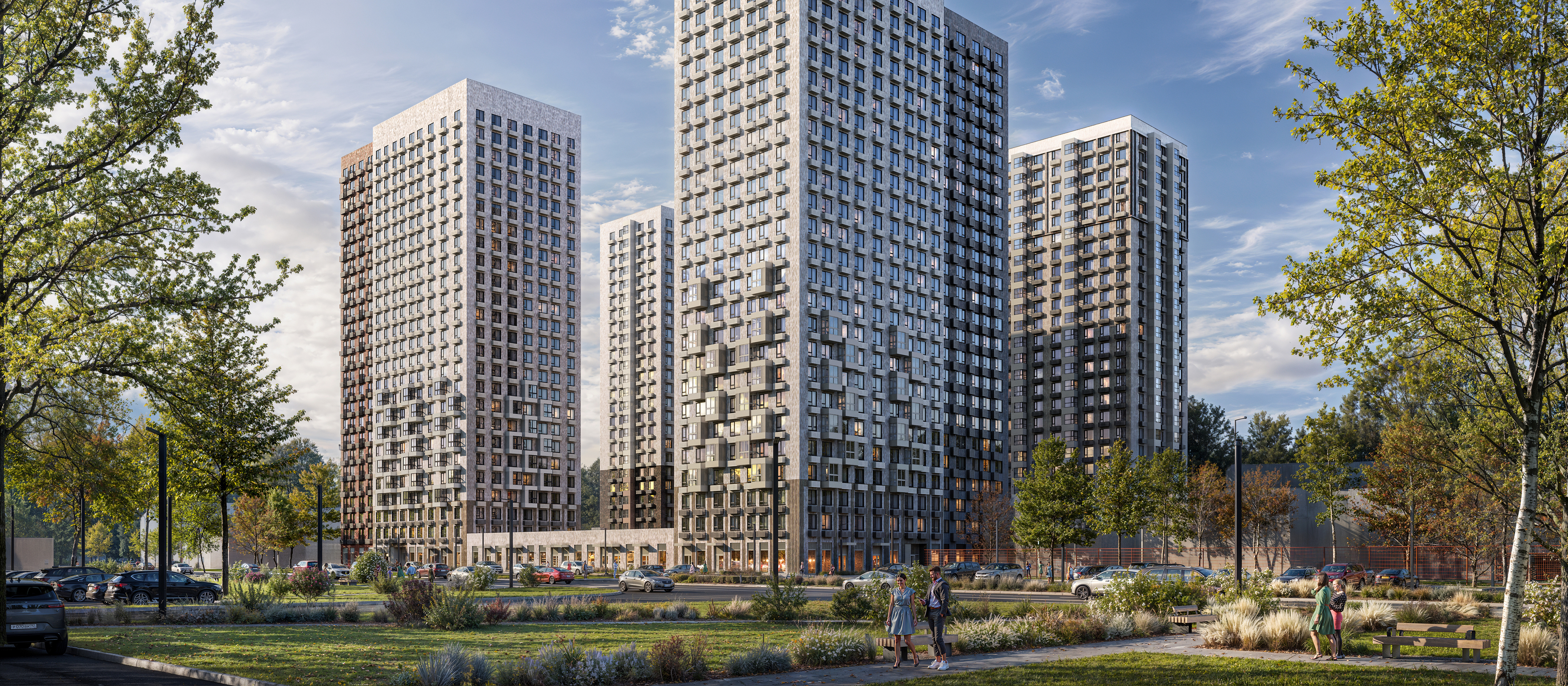 На территории квартала появятся три собственных детских сада, поликлиника, паркинги для жителей и гостей квартала. Во дворах — зелёные парки с местами для отдыха, спортивными и детскими площадками. На первых этажах откроются кафе, магазины и другие сервисы для комфортной жизни.
