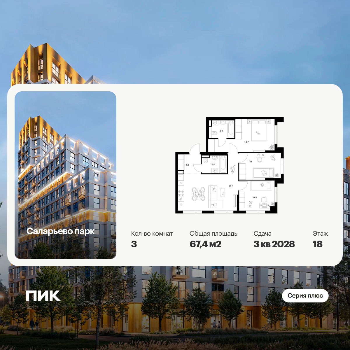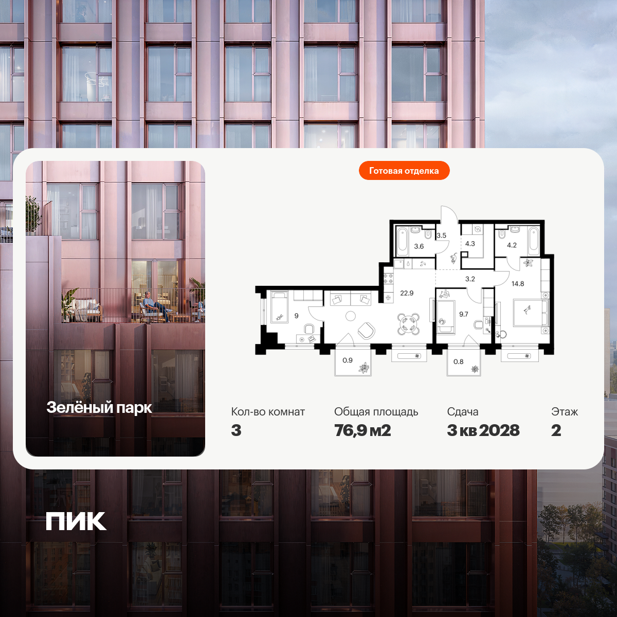 Продаётся 3-комн.квартира площадью 86.83 кв.м на 7 этаже 9 этажного дома (Корпус 4.1, секция 3) проекта ПИК Ильинские луга. Светлый просторный подъезд на уровне земли, функциональная планировка, большие окна, с отделкой.