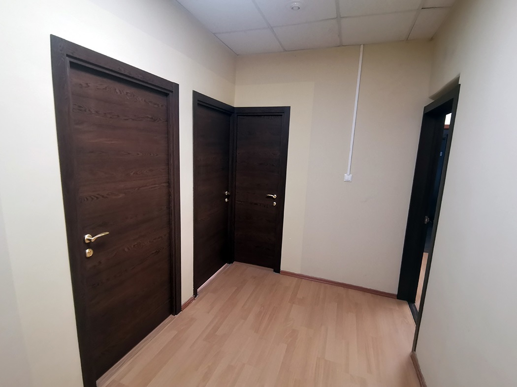 Офис имеет стандартную отделку и предлагает 4 просторные комнаты с ламинатом и ковролином на полу, смешанной планировкой и окнами, выходящими во двор. Два собственных санузла. Вход в здание осуществляется по пропускам, а в офисах предусмотрены местное кондиционирование, естественная вентиляция и центральное отопление. Также имеется пожарная сигнализация для безопасности.