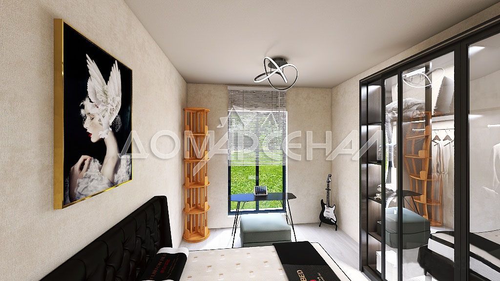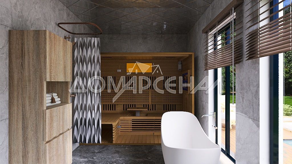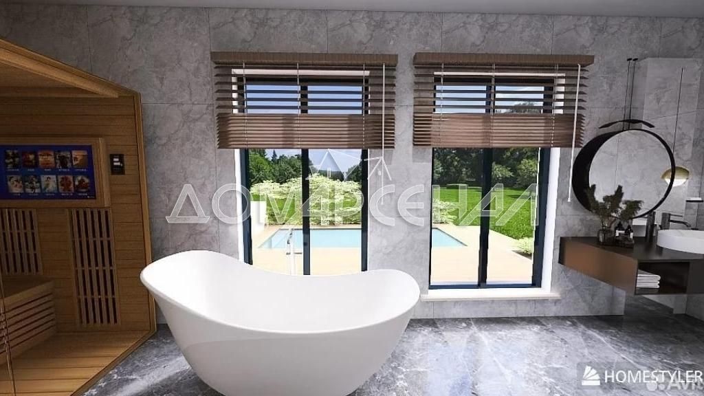 1 этаж: Прихожая, просторная гостиная (68 кв. м) с панорамными окнами, местом для камина, парадной кухней и выходом на террасу с красивым видом на лес. Мастер-спальня, 2 спальни, кабинет. Ванная комната со СПА-зоной и сауной, выход на террасу, где можно установить бассейн или купель. Отдельная техническая кухня, кладовая, котельная, постирочная. 2 гардеробные комнаты, гостевой с/у.