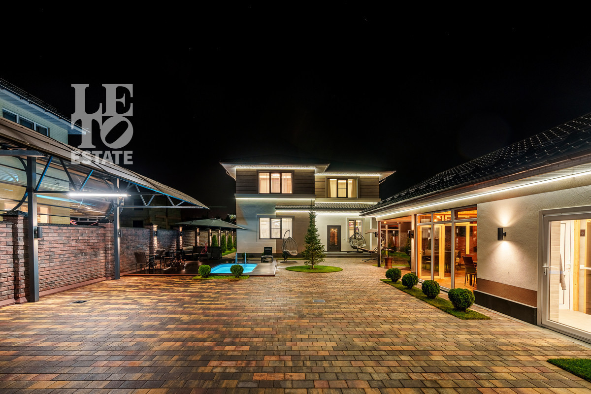 Абсолютно новый ультрасовременный одноэтажный коттедж, построенный по уникальному проекту, площадь дома с учетом террас 250 м2. Функциональная планировка. Полностью выполнены фасадные работы, дом подготовлен к чистовой отделке. Возможна отделка под ключ по договору подряда. В доме высокие потолки 3,2 м. Две террасы (выходы на террасы из гостиной, 2х спален и СПА зоны). Панорамные окна в пол. Охраняемый поселок у опушки хвойного леса в престижном месте. Удобная локация, как для дачи, так и для постоянного проживания.