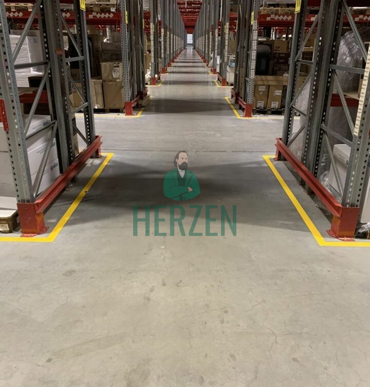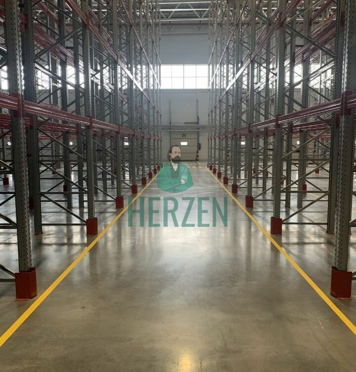 Ровный бетонный пол с антипылевым покрытием. Допустимая нагрузка 10 т/м2.