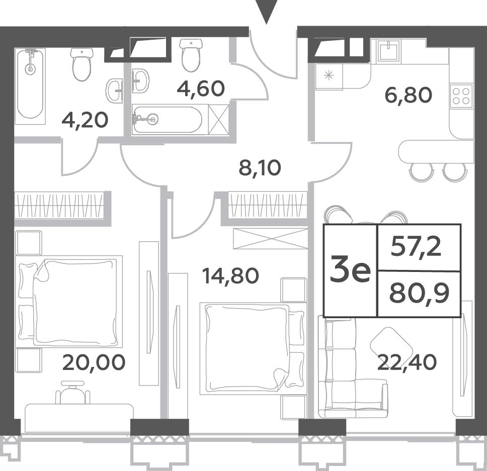 Продаются 4-к апартаменты площадью 84.5 кв.м. на 20-м этаже 29 этажного дома в "НАМЕТКИН ТАУЭР" от ГК ОСНОВА.