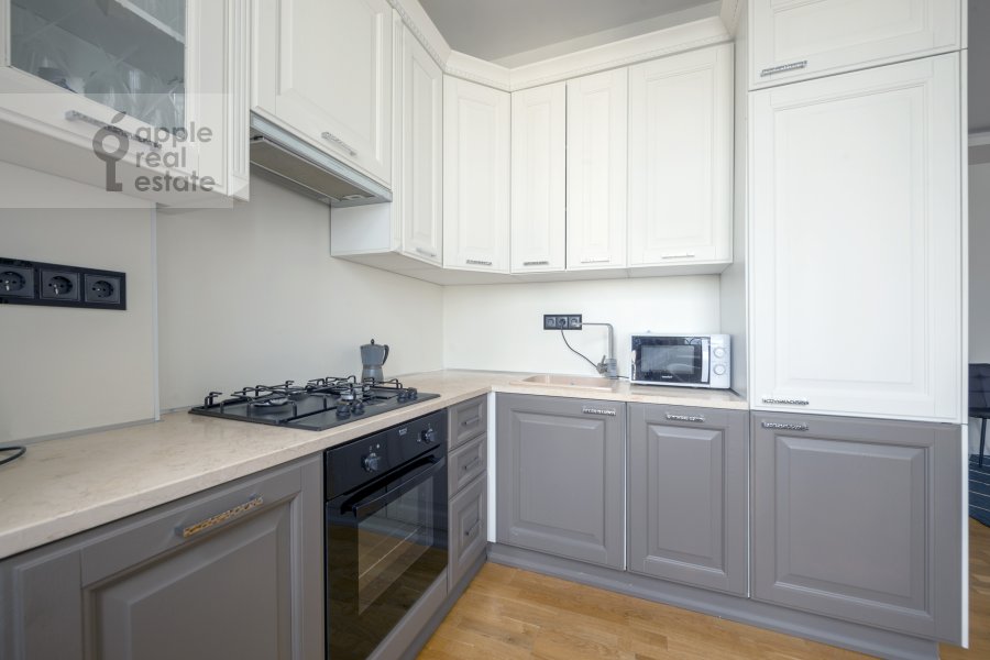 Светлая 2-комнатная квартира в сталинском доме. 7 / 8 этаж. Спален: 1, санузлов: 1. Общая площадь: 72 кв.м. Потолки 4 м. Ремонт в современном стиле. Квартира с мебелью, вывоз невозможен. Кодовый замок. Охраняемый паркинг. Окна в тихий двор. Есть балкон. Есть гардеробная комната. В наличии: посудомоечная машина, холодильник, кондиционер, ванна, стиральная машина. Высокоскоростной интернет. Можно с животными.