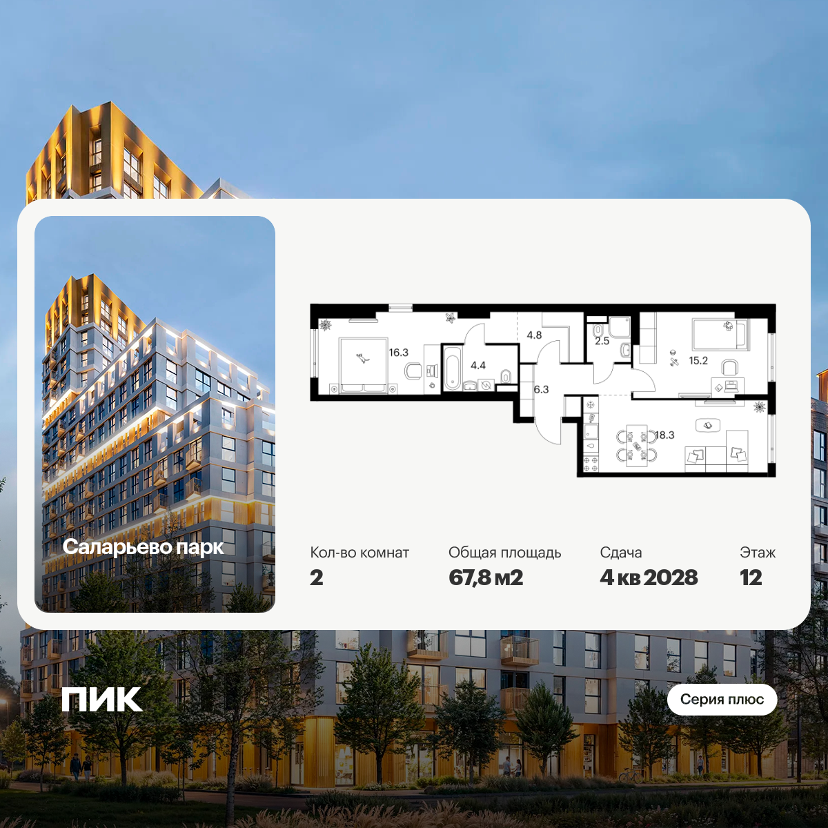 В проекте широкий выбор планировок: от компактных и продуманных студий до просторных трёхкомнатных квартир для большой семьи. Есть удобные форматы с кухней-гостиной, гардеробной и двумя санузлами. Для ценителей простора и обилия солнечного света мы предусмотрели угловые окна и балконы. А с верхних этажей откроется впечатляющий вид на Медведковский заказник, Останкинскую башню и Москва-Сити. Артикул - 874450