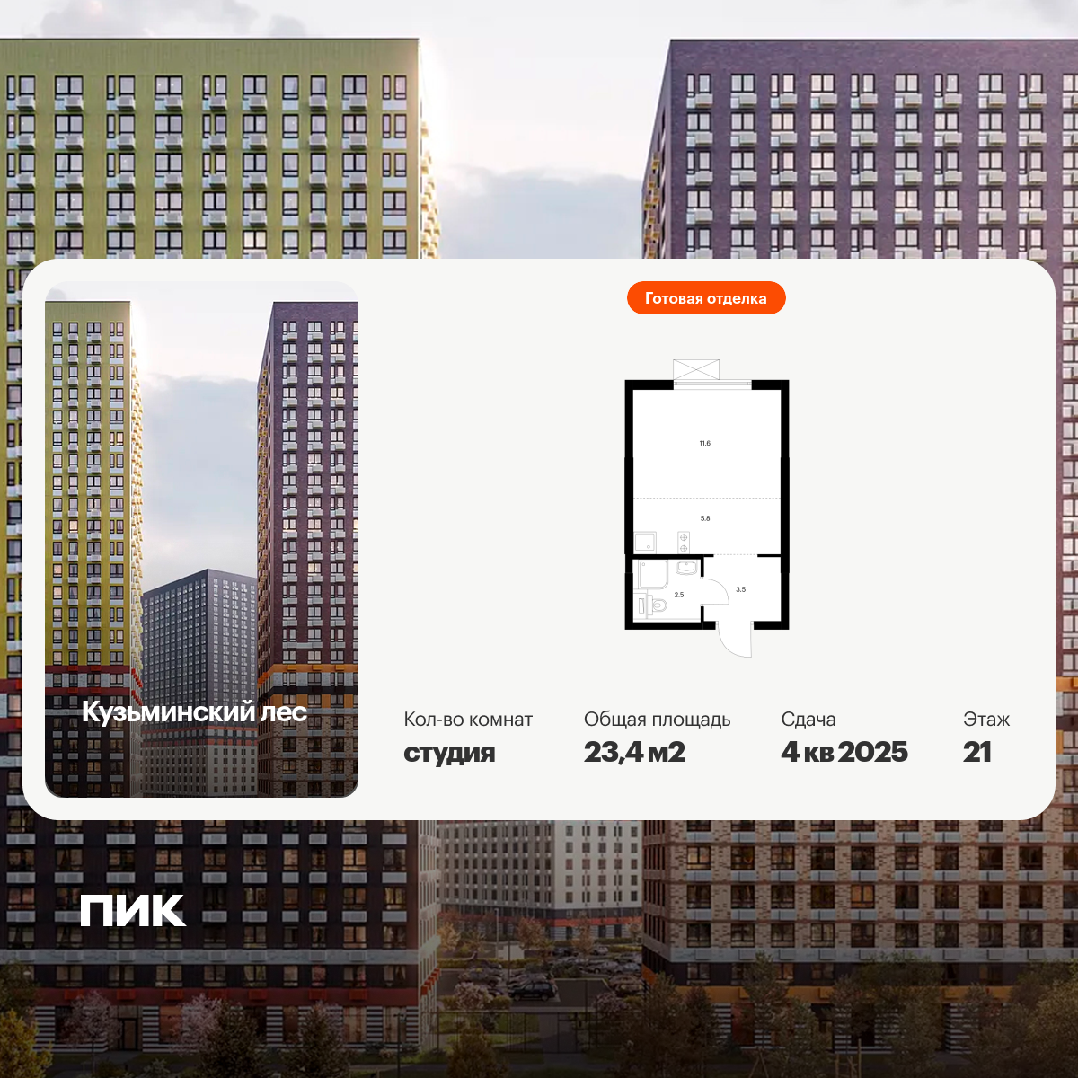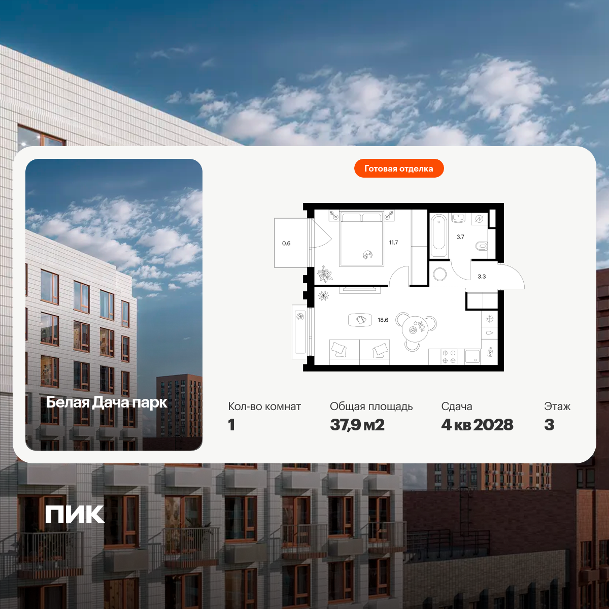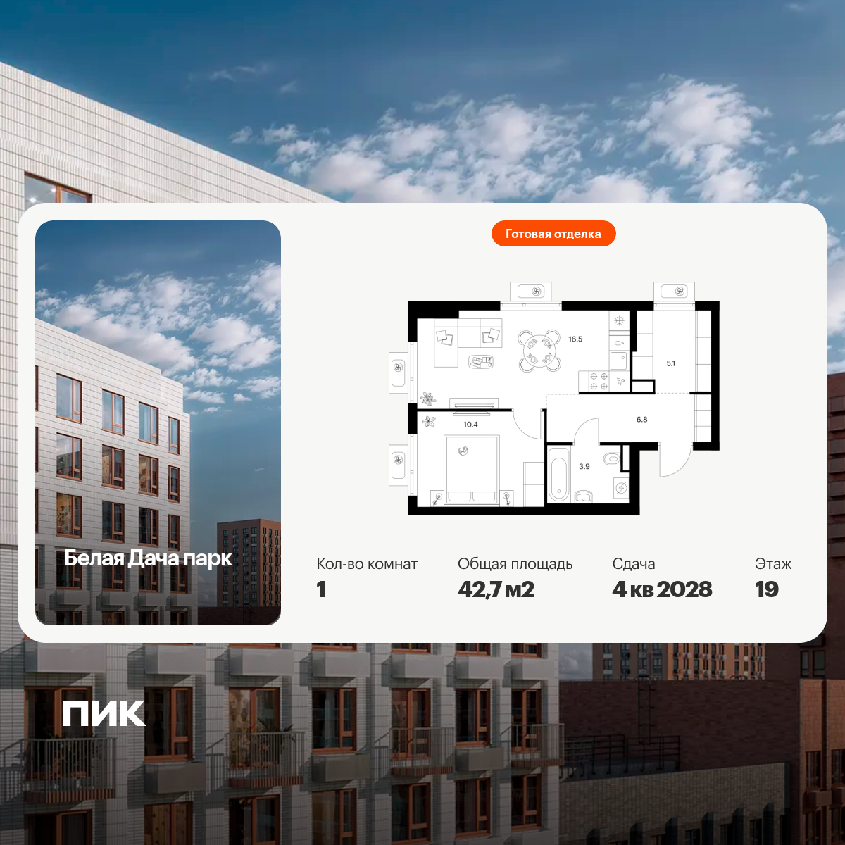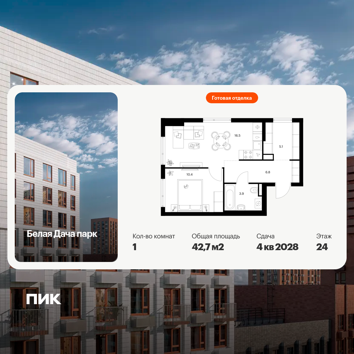Продаётся 1-комн.квартира площадью 34.60 кв.м на 10 этаже 13 этажного дома (Корпус 5.3, секция 4) проекта ПИК Зелёный парк. Светлый просторный подъезд на уровне земли, функциональная планировка, большие окна, с отделкой.