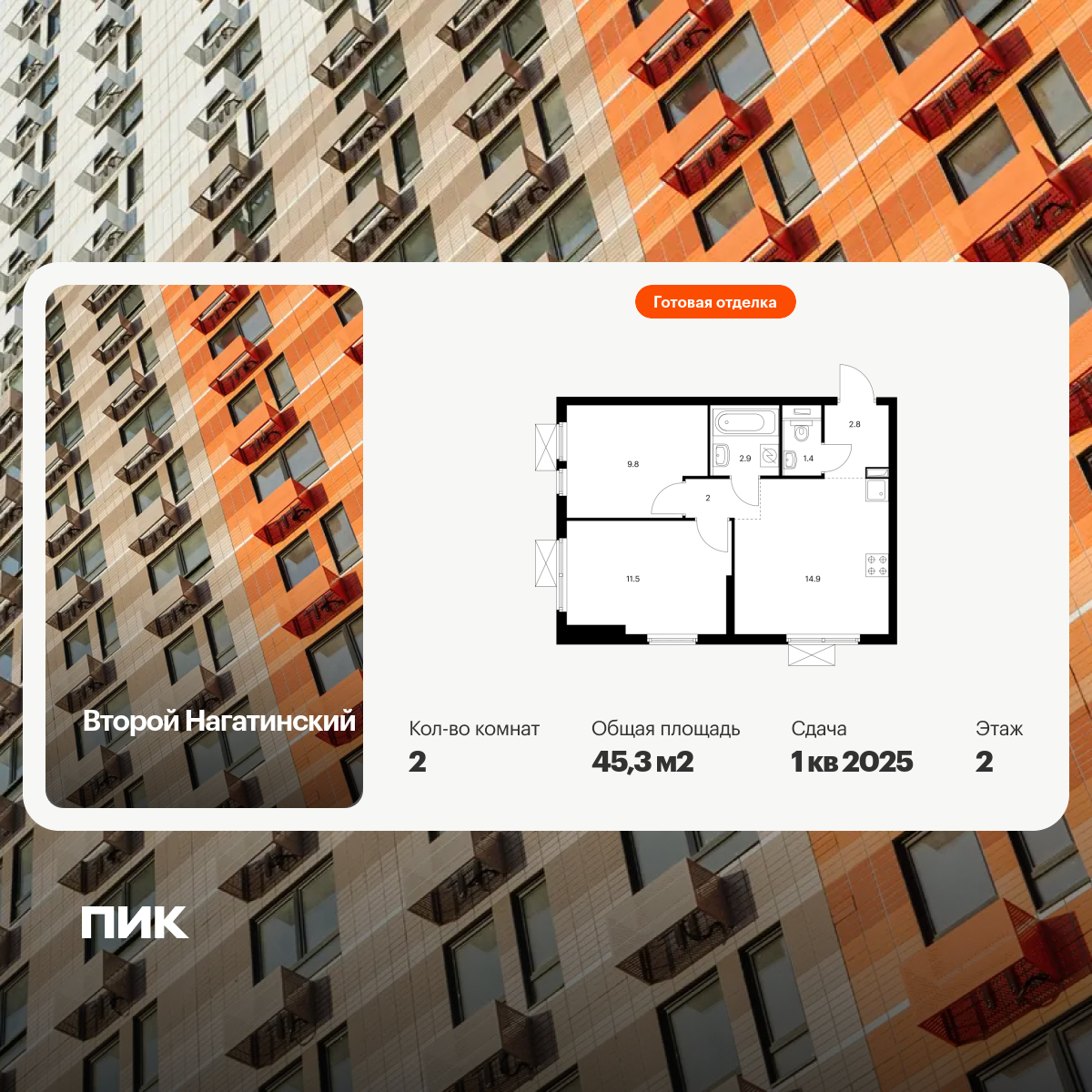 Продаётся 2-комн.квартира площадью 63.40 кв.м на 16 этаже 32 этажного дома (Корпус 4.1, секция 1) проекта ПИК Мичуринский парк. Светлый просторный подъезд на уровне земли, функциональная планировка, большие окна, с отделкой.