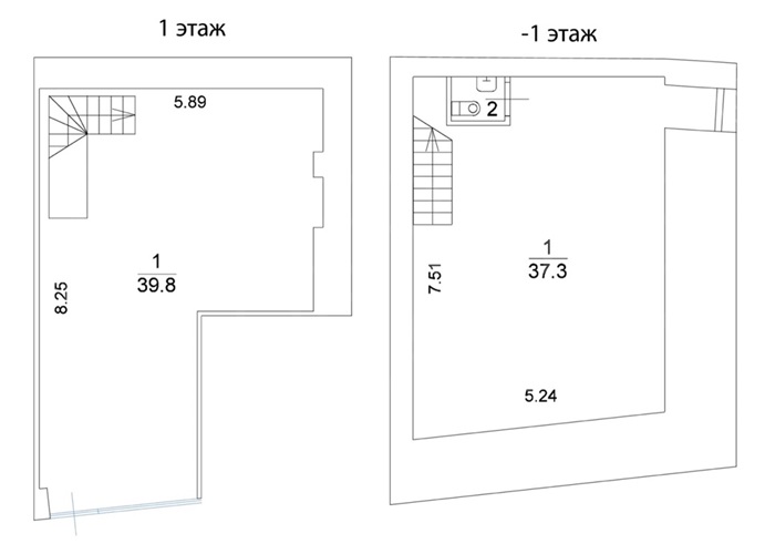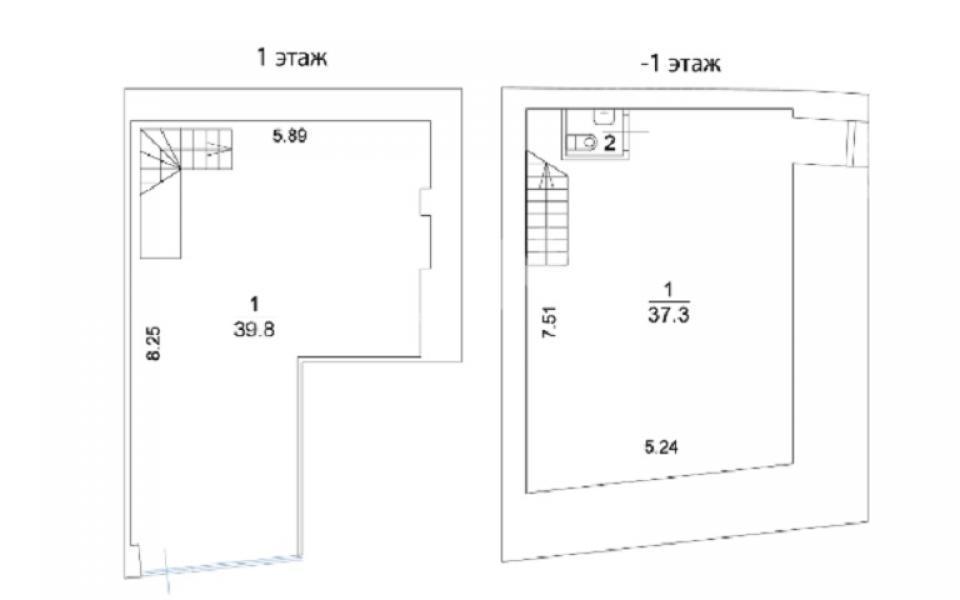 Помещение размещено на 1 (39,8 м2) и -1 этажах (38,4 м2)