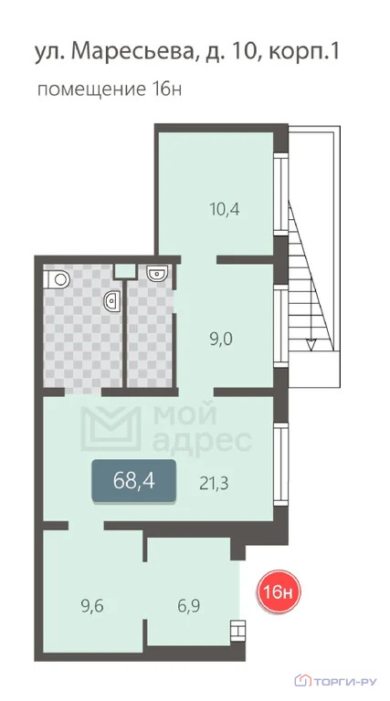 Нежилое помещение, 68,4 м | ЮВАО, р-н Некрасовка, ул. Маресьева, д. 10, корп. 1, этаж 1, помещение 16Н | Метро: Некрасовка (пешком 15 мин., транспортом 15 мин., расстояние 1.19 км)