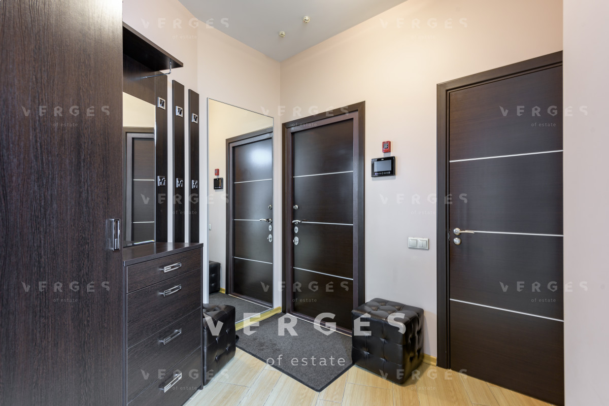 Из панорамных окон квартиры открывается великолепный вид на парк и на пруд.