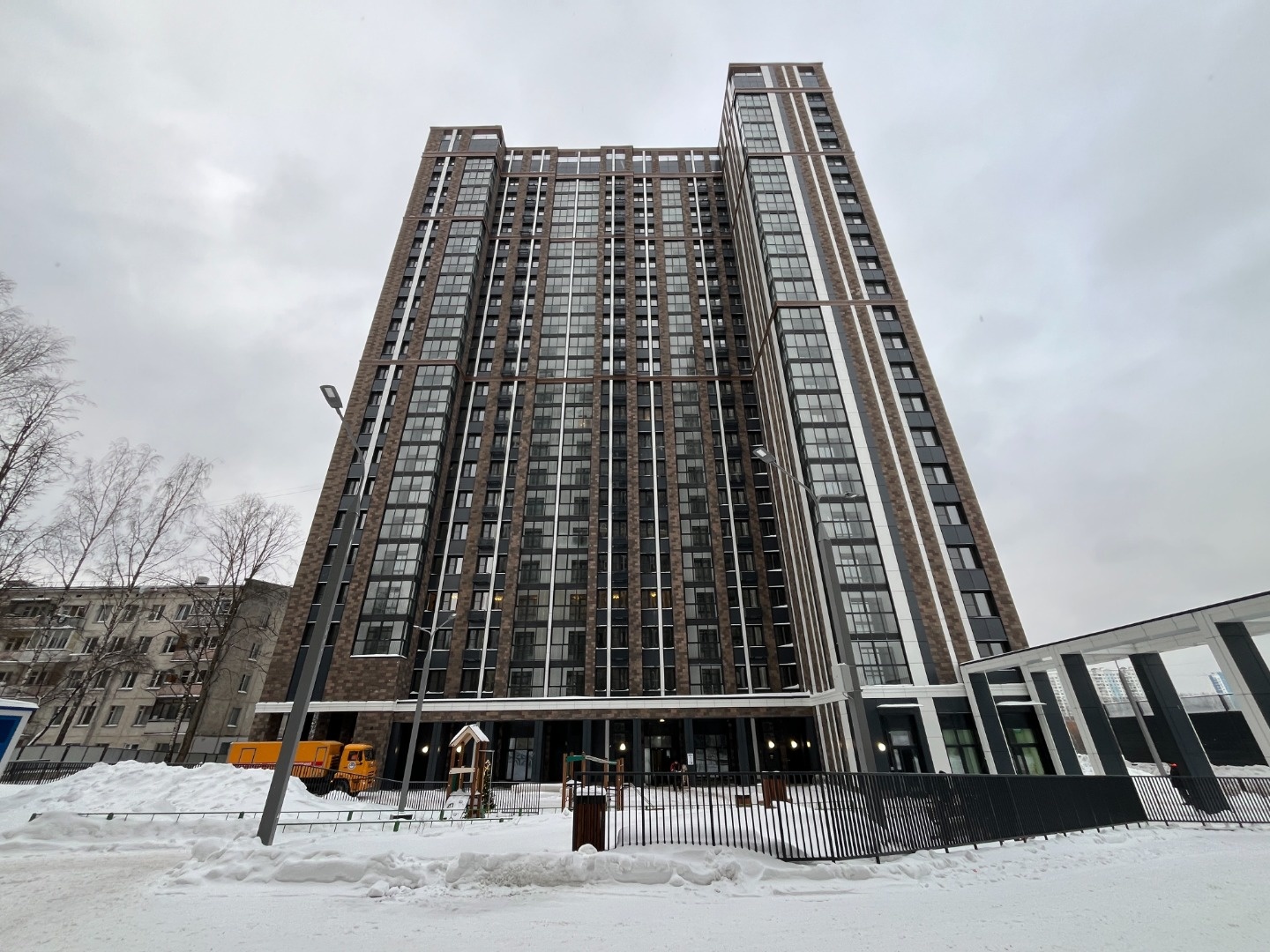 На придомовой территории размещены детские и игровые площадки, площадки для отдыха и спорта. Озелененная придомовая территория, высажены деревья, кустарники, разбиты газоны и цветники.