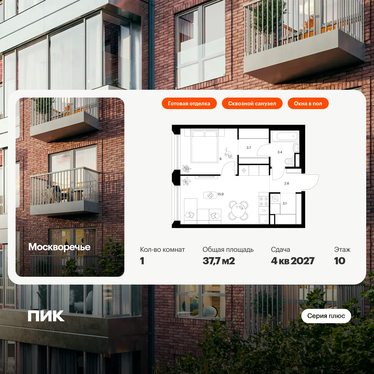 Площадь жилая: 32 м