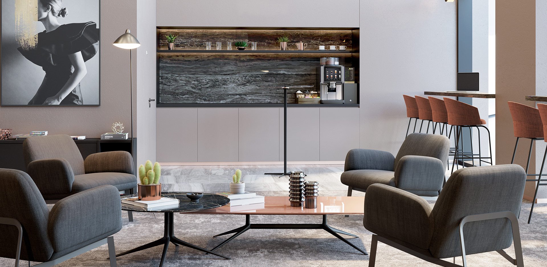 Когда в жизни происходит что-то удивительное и захватывающее, мы не можем удержаться от восторженного восклицания: «Это словно из фильма!» Жилой комплекс «Режиссёр» является поистине уникальным уголком. Этот объект идеально подходит для тех, кто стремится к написанию собственного сценария жизни.Проект входных групп создан архитектурным бюро Haast. В работах этого бюро чувствуется уважение к потребностям успешного жителя современного мегаполиса.Три башни объединены общим вестибюлем, оформленным в современном стиле. Монументальные скульптурные формы подчеркивают архитектуру пространства.Дизайн мест общего пользования является продолжением архитектурной концепции зданий. Он выполнен в светло-серых тонах с акцентами в виде медных элементов, перекликающихся с фасадами.В холле каждой секции стоят уютные кресла. Идеальное место, чтобы подождать того, кто слегка задерживается, или обсудить премьеру сезона с соседями.Детская игровая комната — отличный выход при плохой погоде.В центральном холле есть специальная зона коворкинга, где можно спокойно посидеть с ноутбуком или даже устроить совещание.Для встреч с друзьями и проведения мероприятий подходит лаундж-зона. При желании можно объединить лаундж-зону с детской игровой и устроить общий праздник для детей и взрослых.