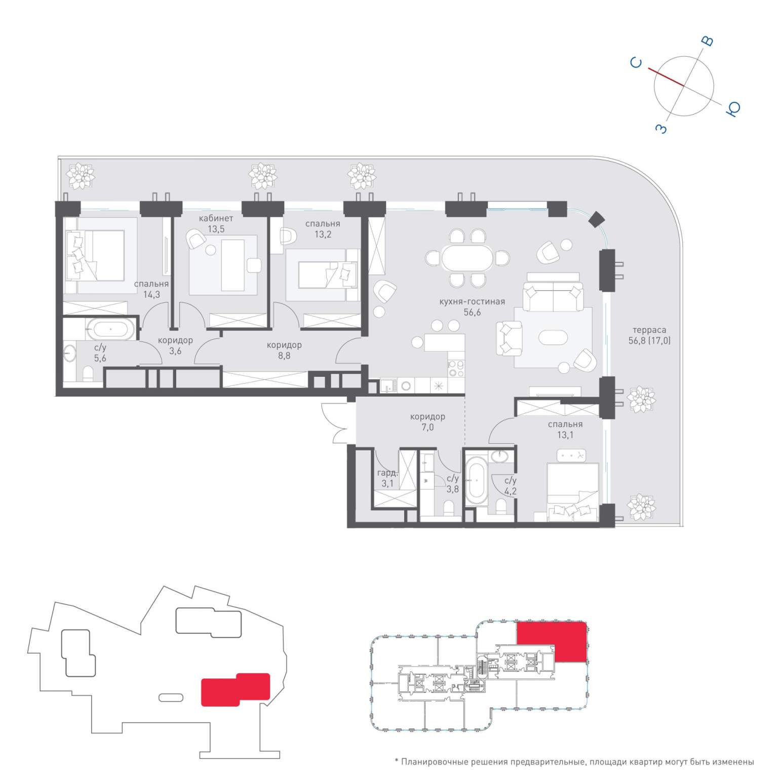 3к квартира 118 м² в квартале Клубный квартал Фрунзенская набережная