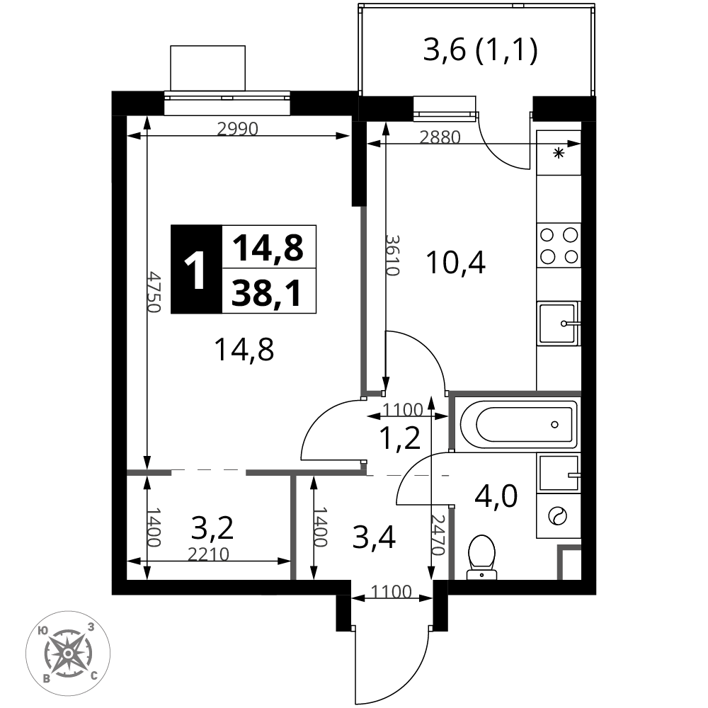 Главная Купить квартиру в Москве и МО 2к квартира 58 м² в ЖК Героев