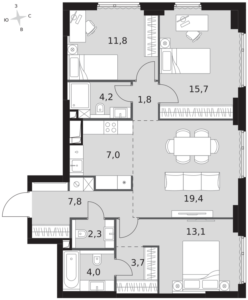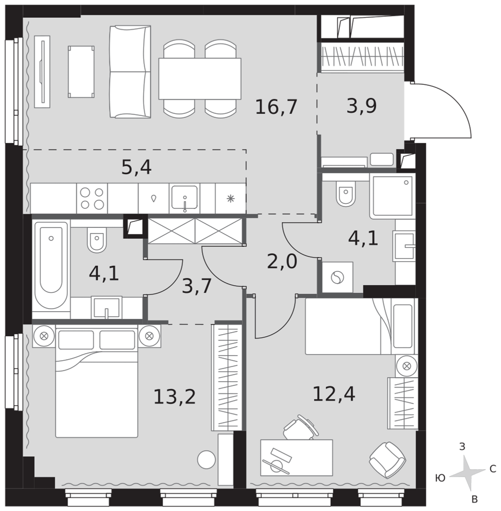 Купить 2к квартиру 72 м² в ЖК NOVA (Нова)