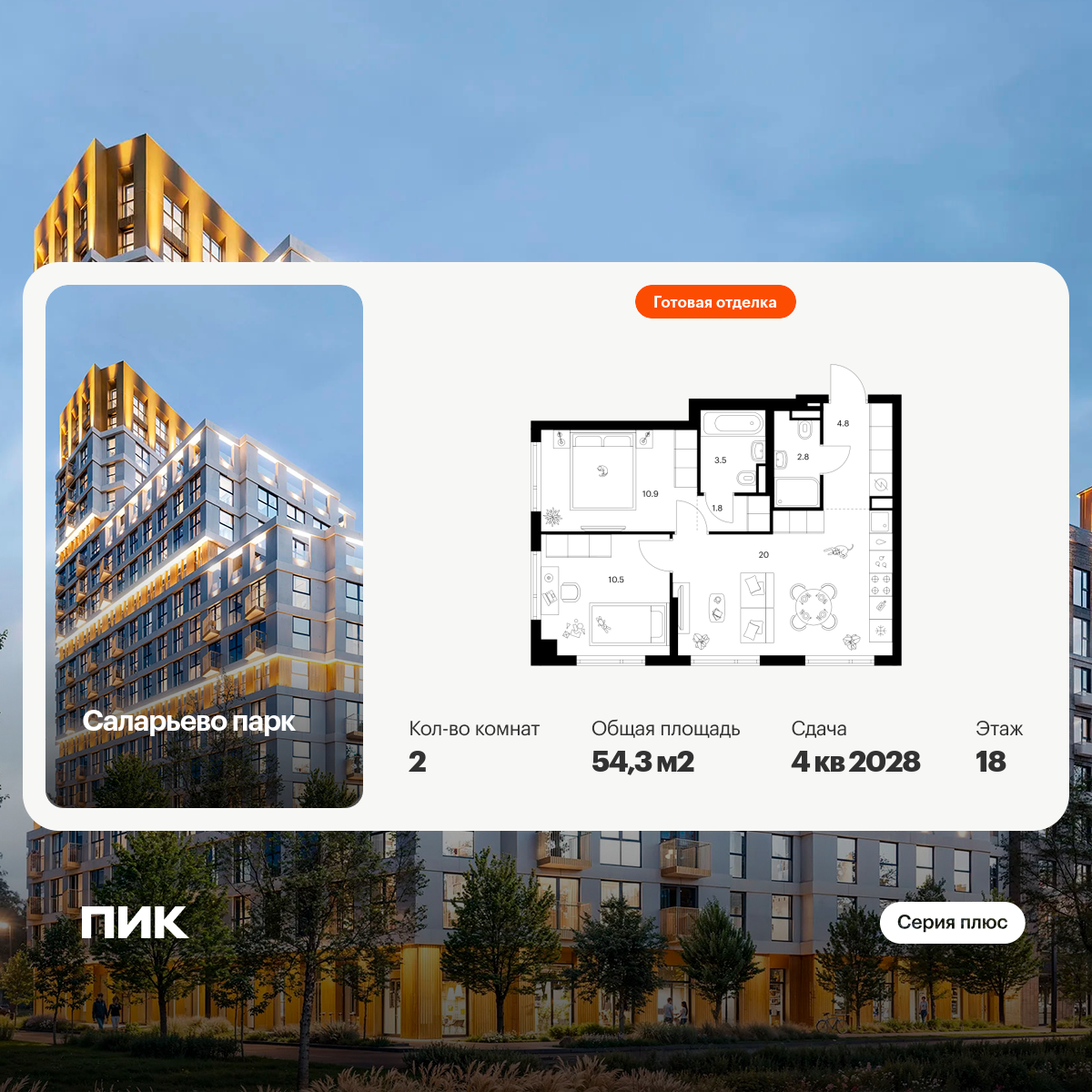 Купить 2к квартиру 54 м² в ЖК Облака 2.0