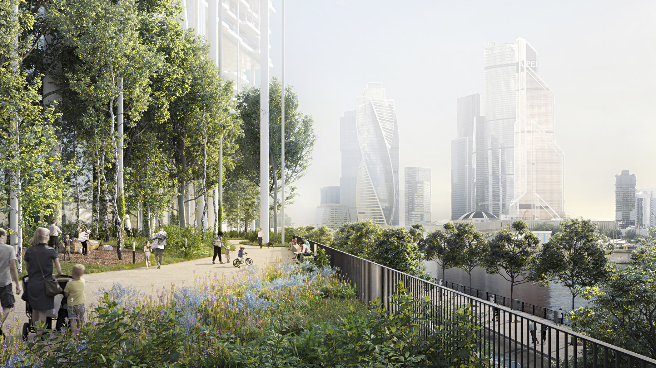 River Park Кутузовский — это будущее Кутузовского проспекта, эко-футуризм в архитектуре и новый уровень премиального комфорта для семей. 5 башен-небоскребов по 45-46 этажей объединены единым основанием с подземным паркингом и зеленым внутренним двором. Архитектура от именитого бюро ADM отличается уникальной пластикой фасадов — башни словно парят в воздухе, играя гранями как драгоценные камни.FAMILY PREMIUM — это философия проекта. Комплекс создается по принципу клубной самодостаточности для взыскательных клиентов — здесь предусмотрено все и даже больше для каждого члена семьи. По внешнему периметру расположена торговая галерея. На территории частная школа на 460 мест и детский сад на 200 мест.В закрытом внутреннем дворе — уникальная по насыщенности инфраструктура только для членов клуба. Музыкальный салон и Gentlemen-club, симулятор гольфа и игровая детская комната, и многое-многое другое.