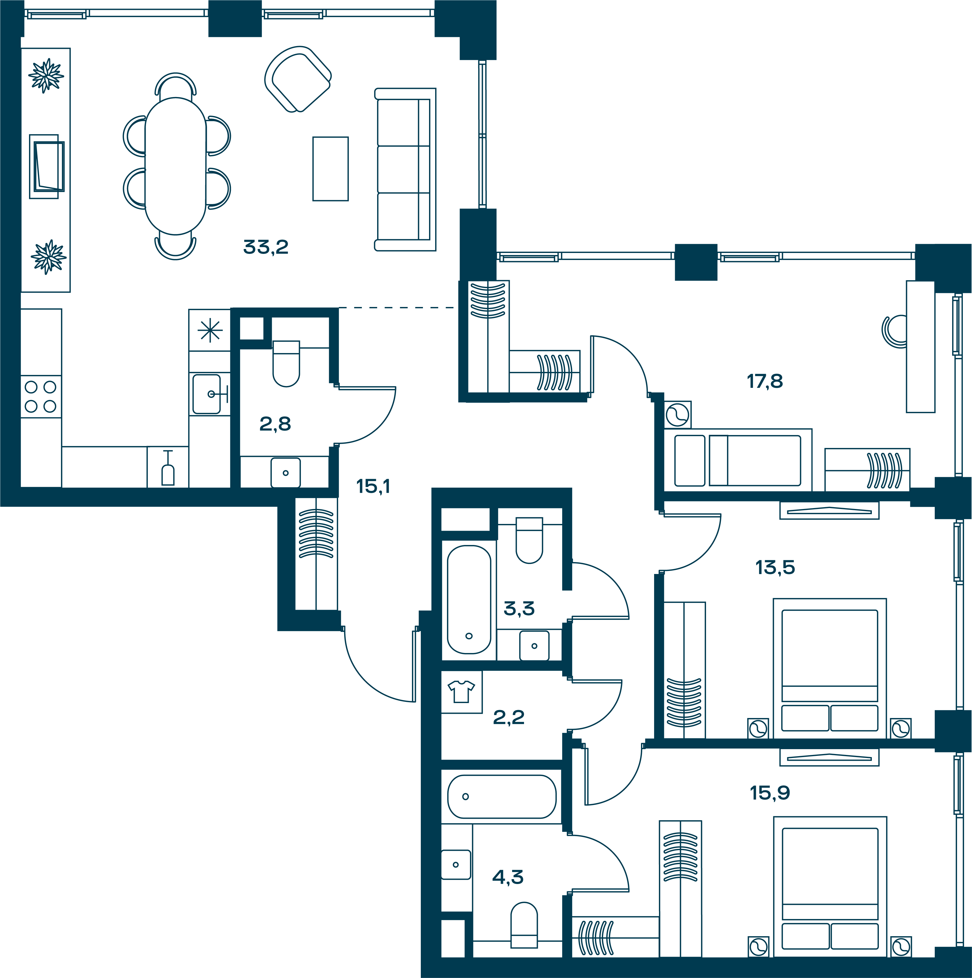 площадь комнат м²