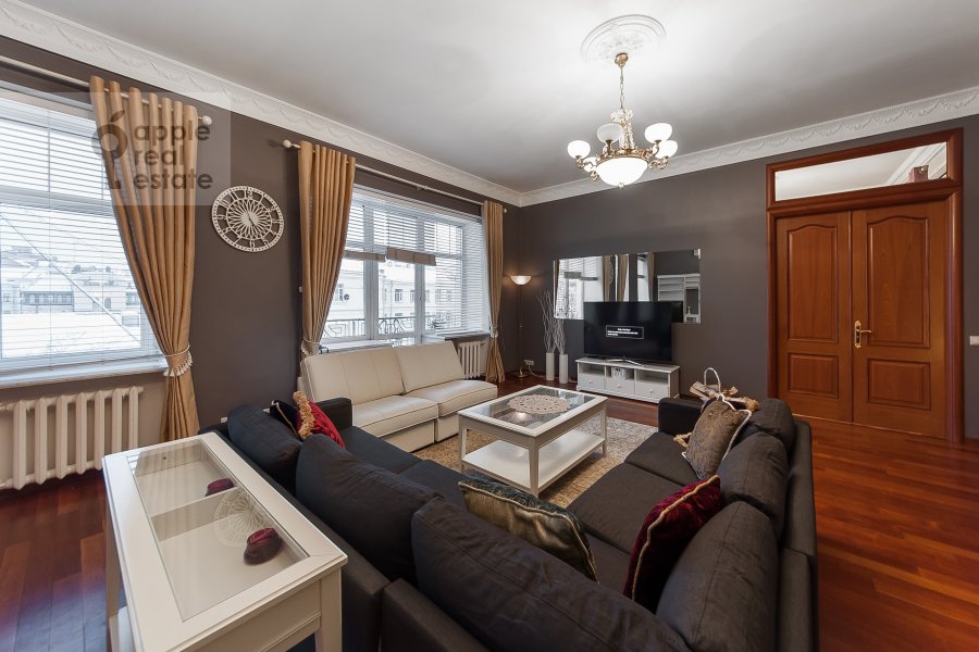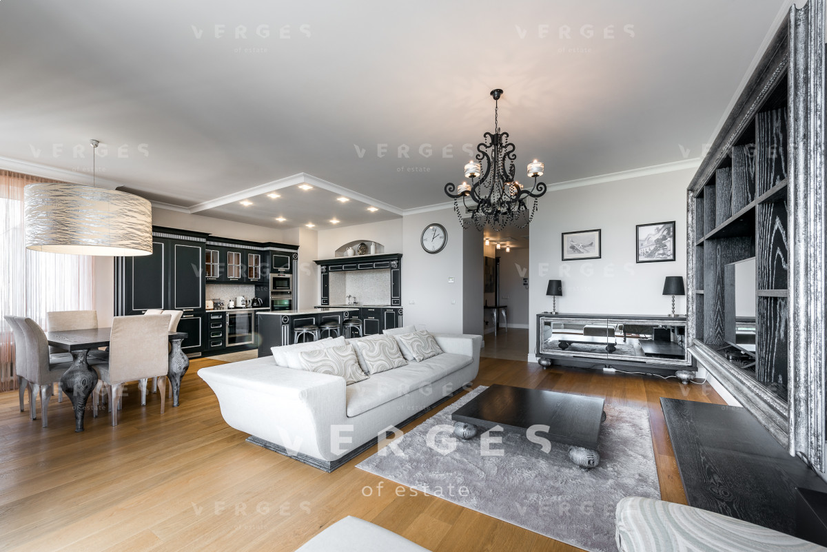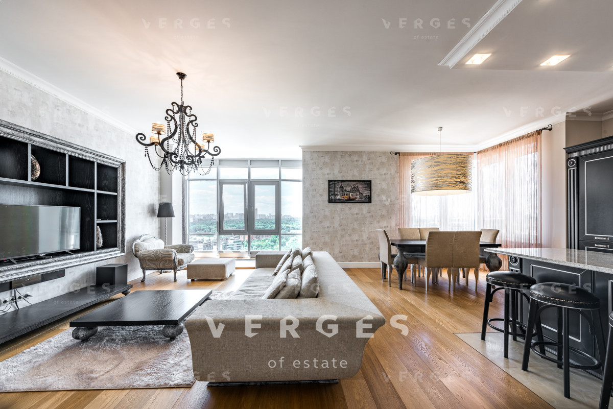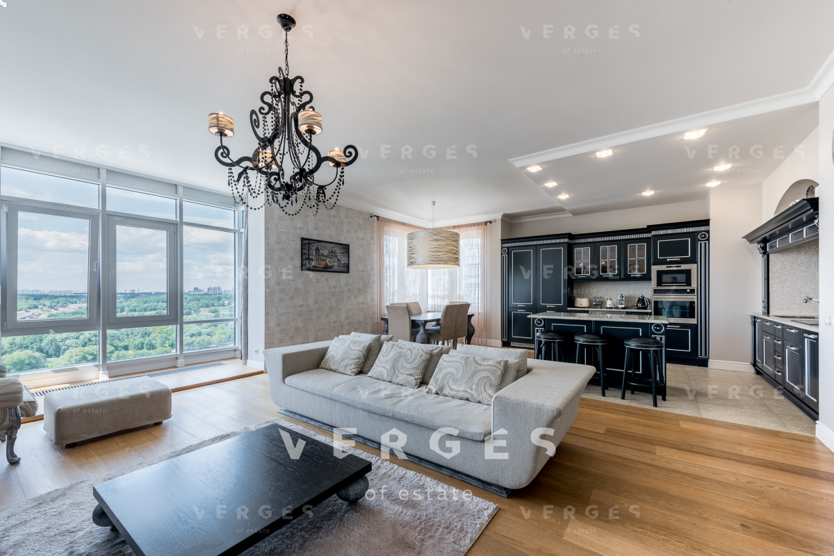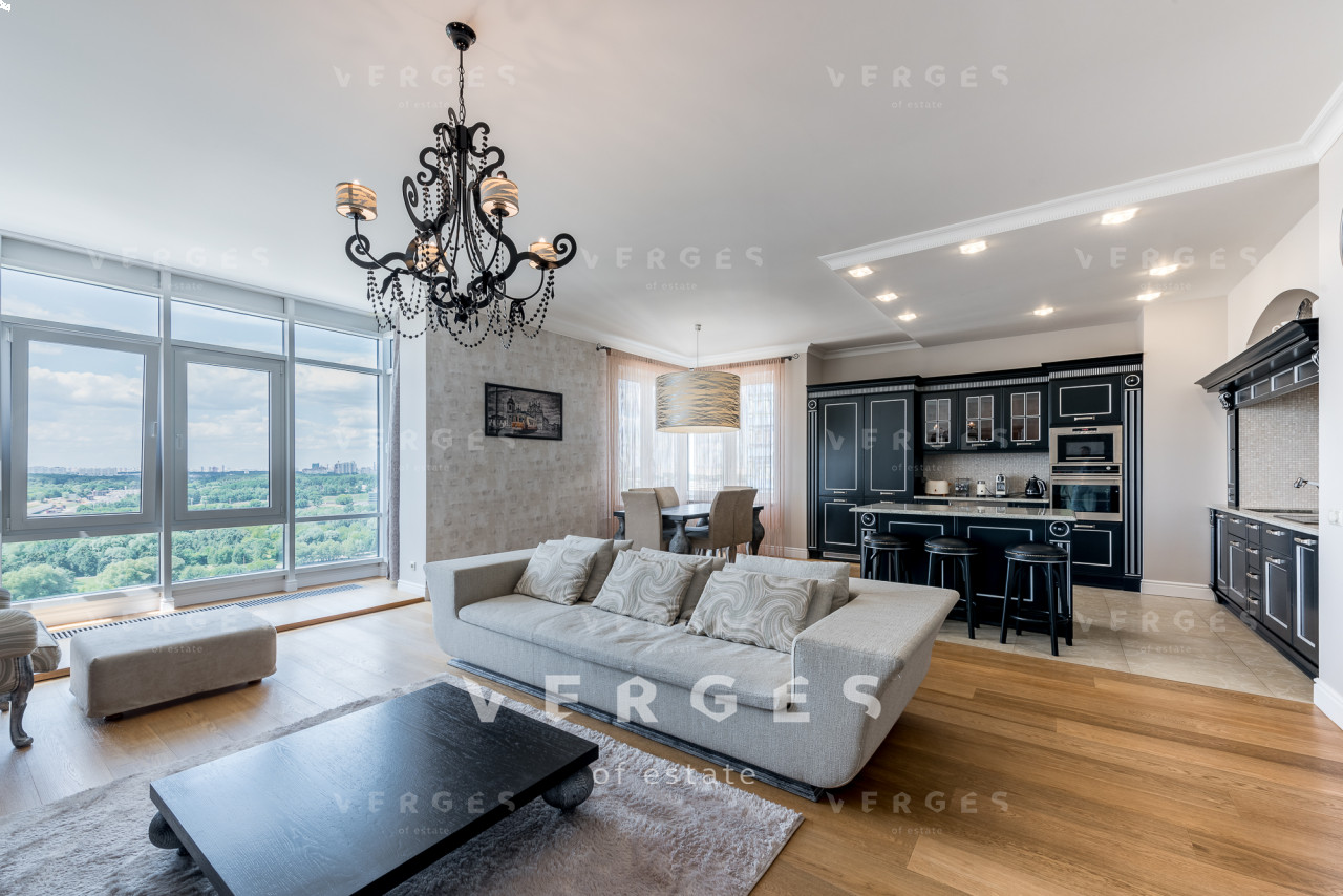 Планировкой предусмотрено: холл 14,7 м., просторная гостиная 35,9 м., спальня 13,8 м., взрослая спальня 15,4 м., кабинет 13,8 м., кухня 14,3 м., гостевой с/у, гардеробная комната, ванная комната, постирочная, душевая. Из окон открывается красивая панорама на силуэты небоскребов Москва-Сити.