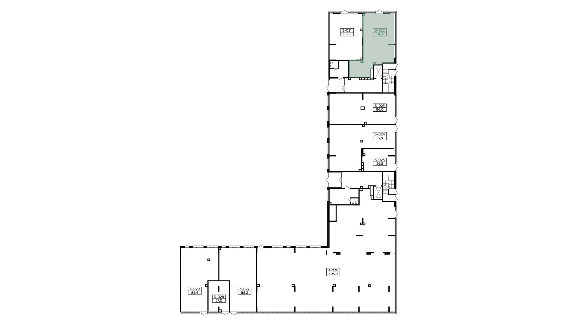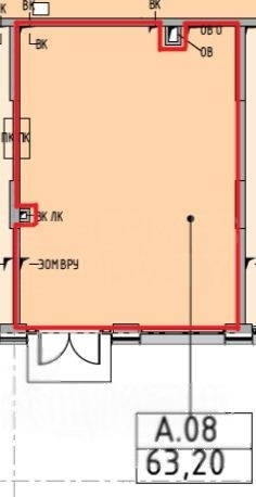 Площадь 63,2 м² на 1-м этаже стилобата в квартале.