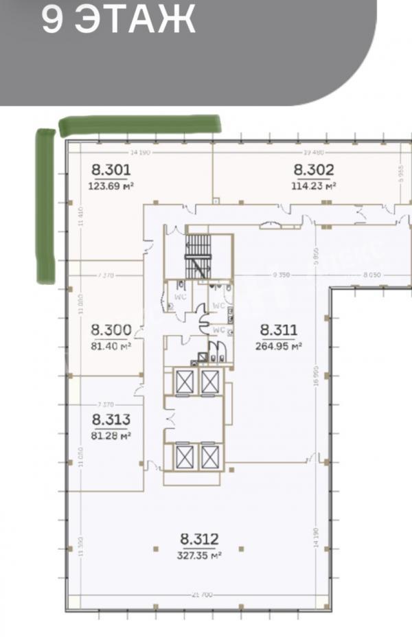 8 м этаж, витринные окна, вид на Западный корпус и на Жуков проезд.