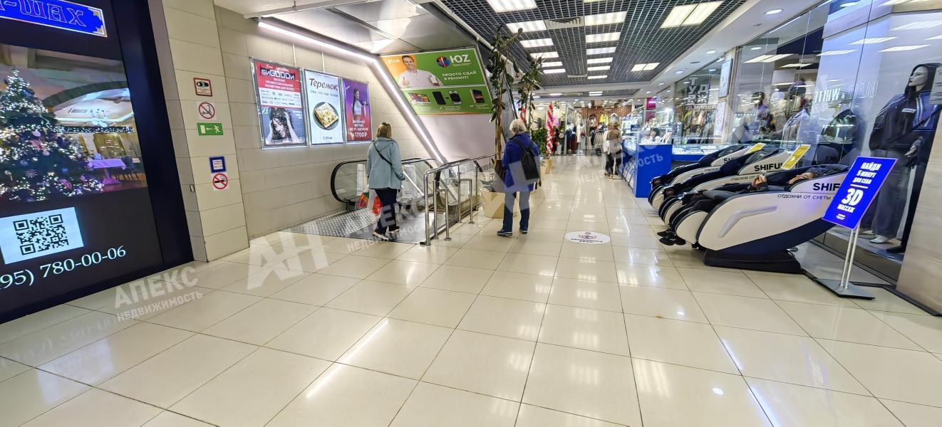 В помещении открытая планировка, высота потолков 4.5 м, вход рядом с эскалатором.