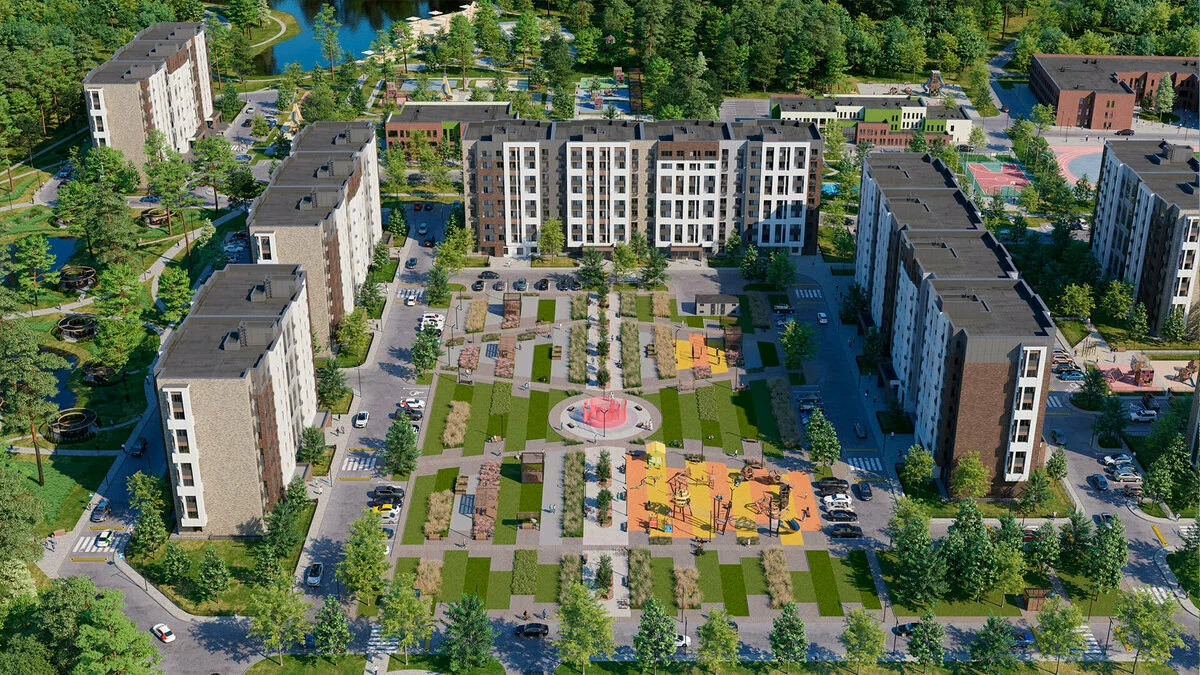 Экоквартал "Радость" — это не просто место для жизни, это искусно сплетенные нити современности и природной красоты, вплетенные в живописный уголок Солнечногорского района, всего в 28 километрах от МКАД по Ленинградскому шоссе. Здесь каждый день наполнен чудесным балансом между ритмом большого города и умиротворенной загородной жизнью. Экоквартал представляет собой гармоничное сочетание современной архитектуры и природного ландшафта. Монолитные жилые дома, выполненные в светло-тёплых тонах, имеют бионическую геометрию фасадов и обилие остекления, что делает их яркими акцентами в окружающей среде.Девять корпусов уютно расположились на земельном участке площадью более 8 гектаров, словно подчёркивая свою связь с природой. Благодаря такому расположению, утренний свет наполняет квартиры, даря ощущение простора и свободы.Придомовая территория жилого комплекса обещает стать настоящим оазисом для его жителей. Зелёные скверы, где можно насладиться тишиной и свежим воздухом, озеро с оборудованными пирсами для любителей рыбалки или просто желающих полюбоваться водной гладью, освещённые аллеи для романтических прогулок - все это создает неповторимую атмосферу уюта и спокойствия.