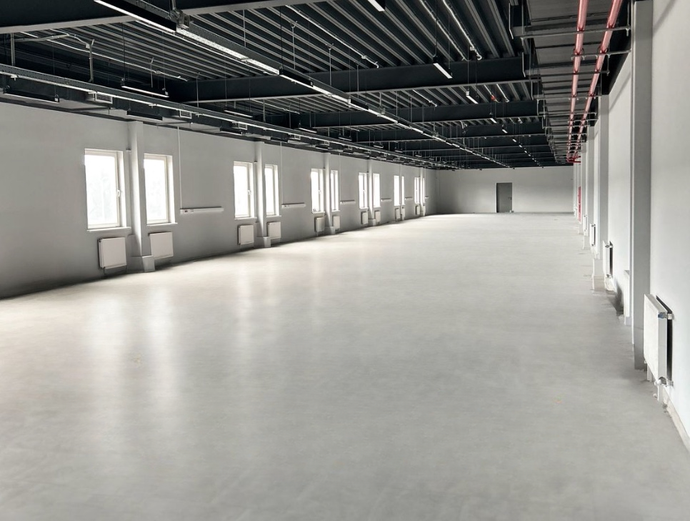 Пол склада— топинговый бетон, пол офиса - керамогранит плитка.