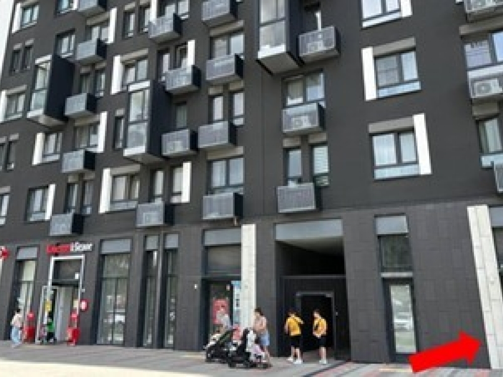 . Возле объекта, весь поток людей от парковки идет через помещение