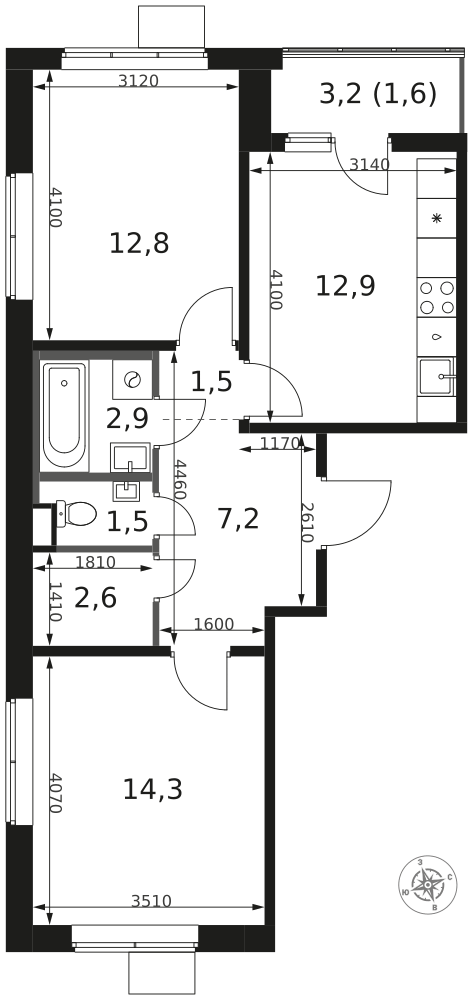 39 м²