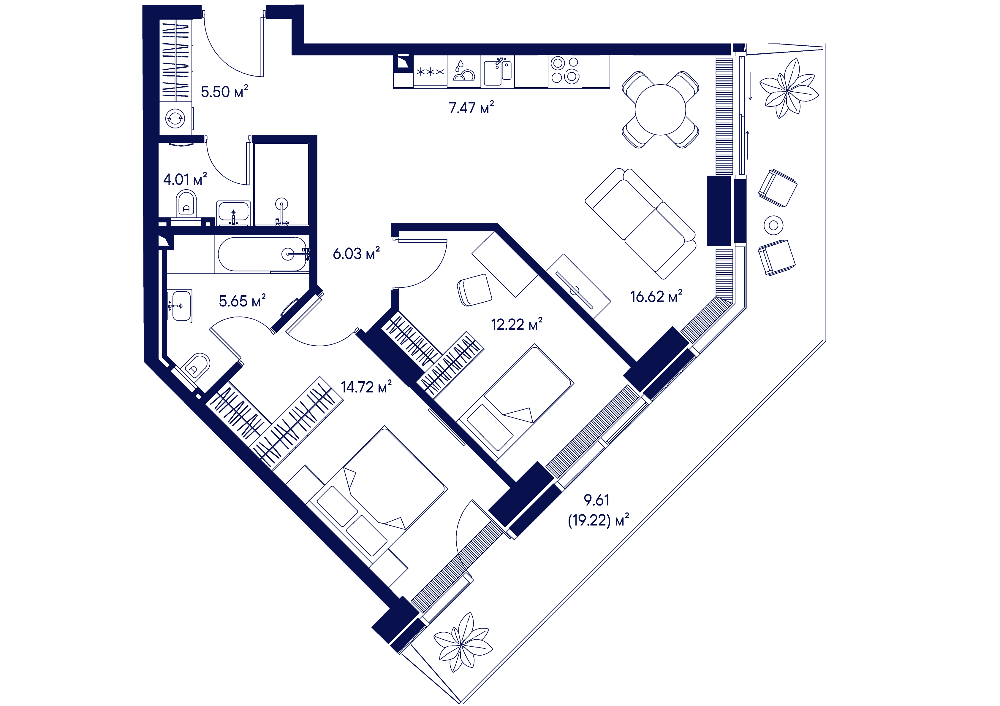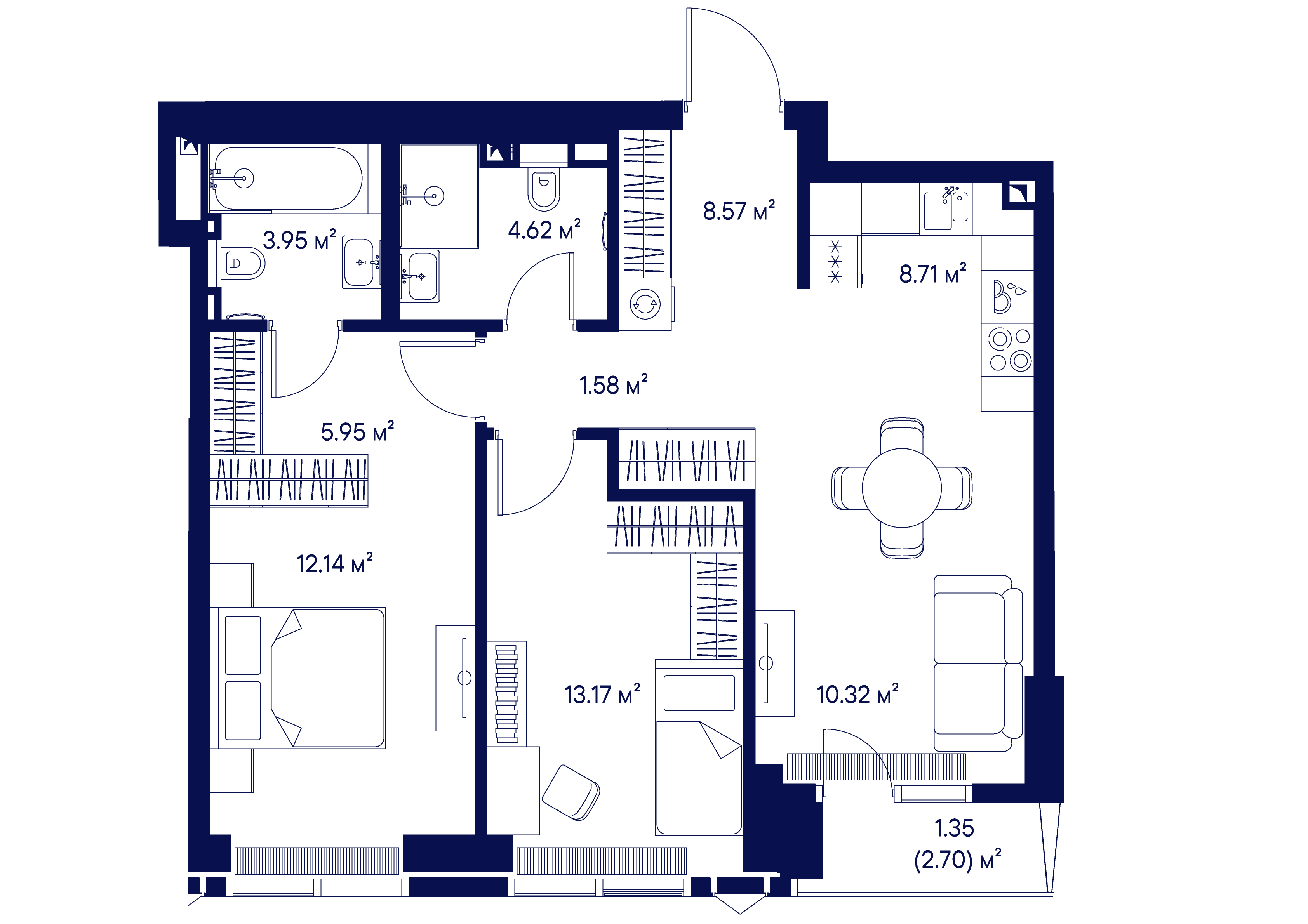 Продаётся 2-комн. квартира от застройщика: общая площадь 63.60 м, жилая 25.70 м, кухня 22.10 м, 17-й этаж, жилой квартал «Остров 7», корпус 7 (секция 2) . Срок сдачи: 3 квартал 2028 года.