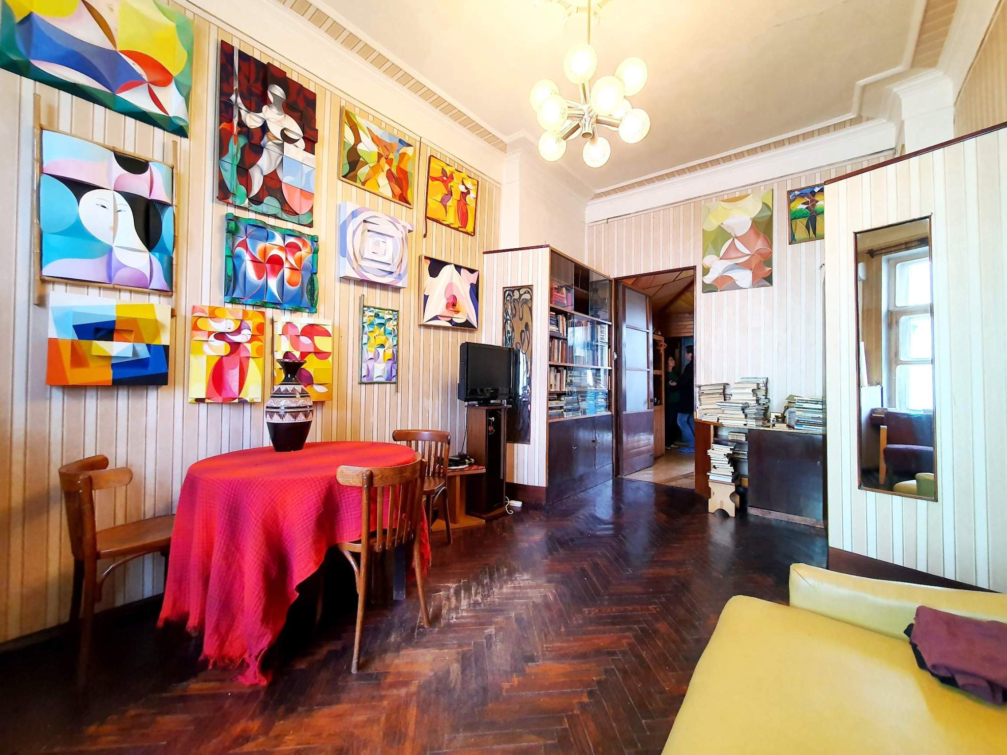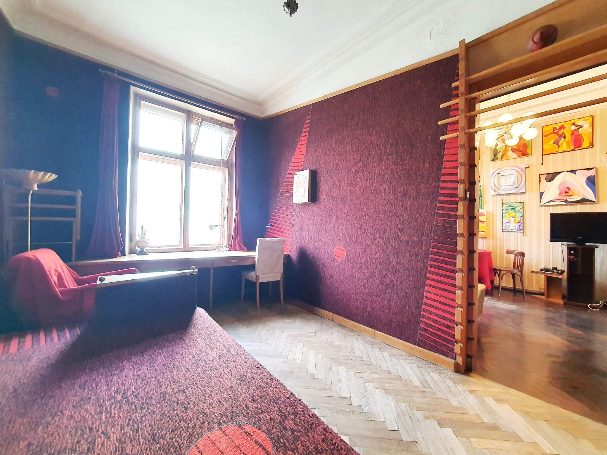 Двухкомнатная квартира в Тверском районе в 1 минуте пешком от метро Новослободская. Сталинский кирпичный дом с красивым фасадом, потолки 3,4 м, окна на две стороны (окна кухни - во двор, окна спальни и гостиной - в Весковский переулок) . Приличные соседи, чистый подъезд, закрытый внутренний двор с парковкой и детской площадкой.