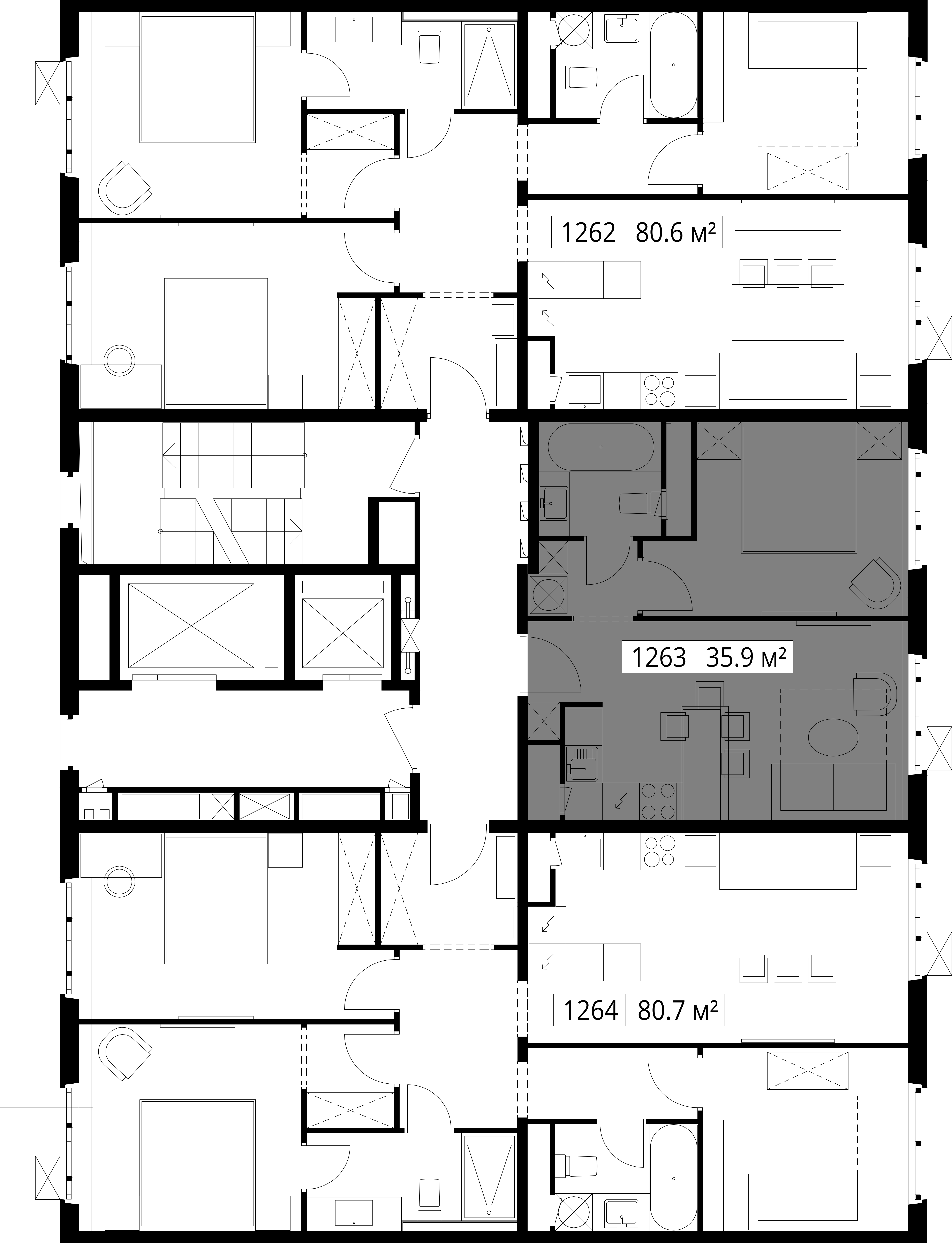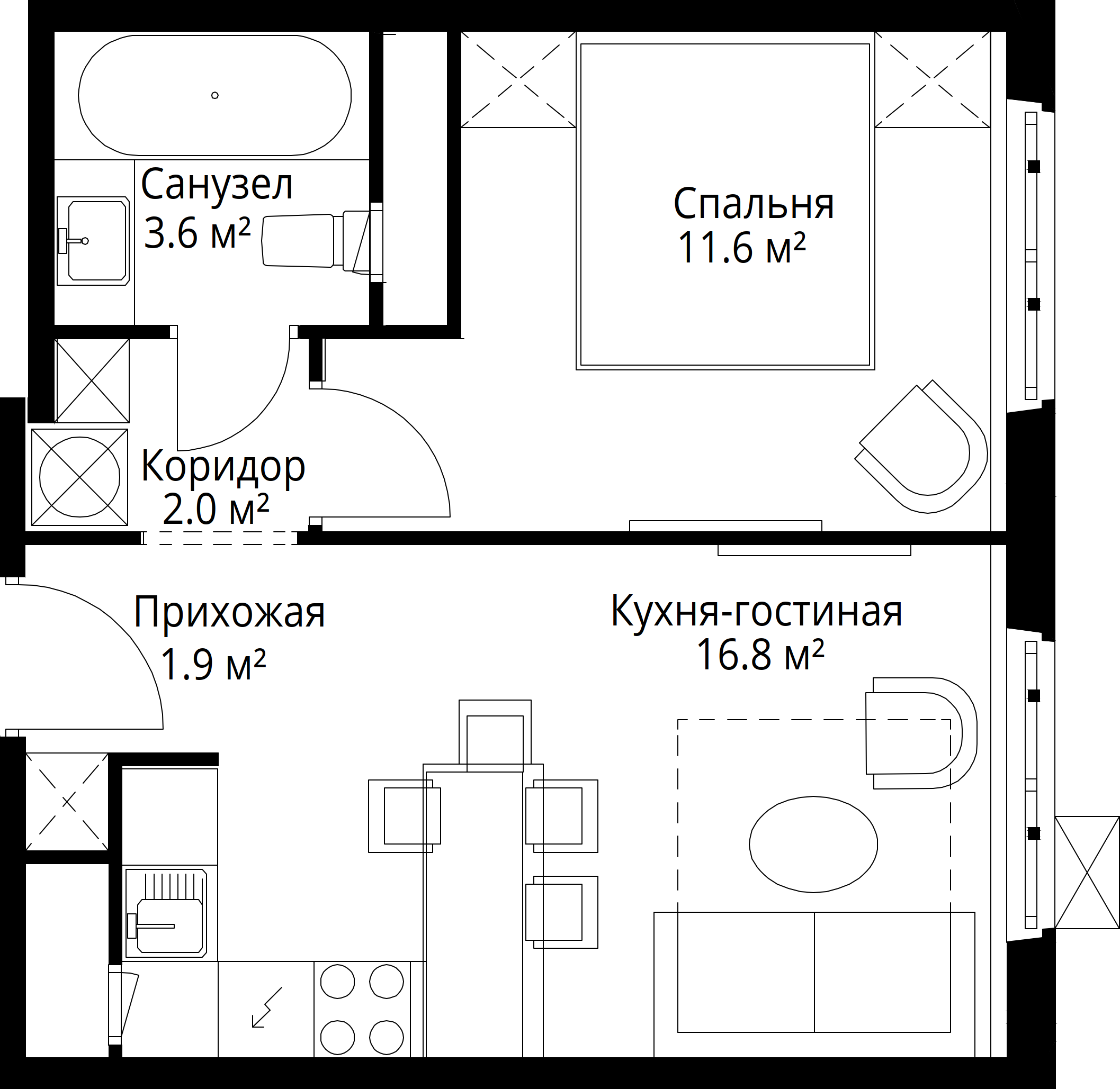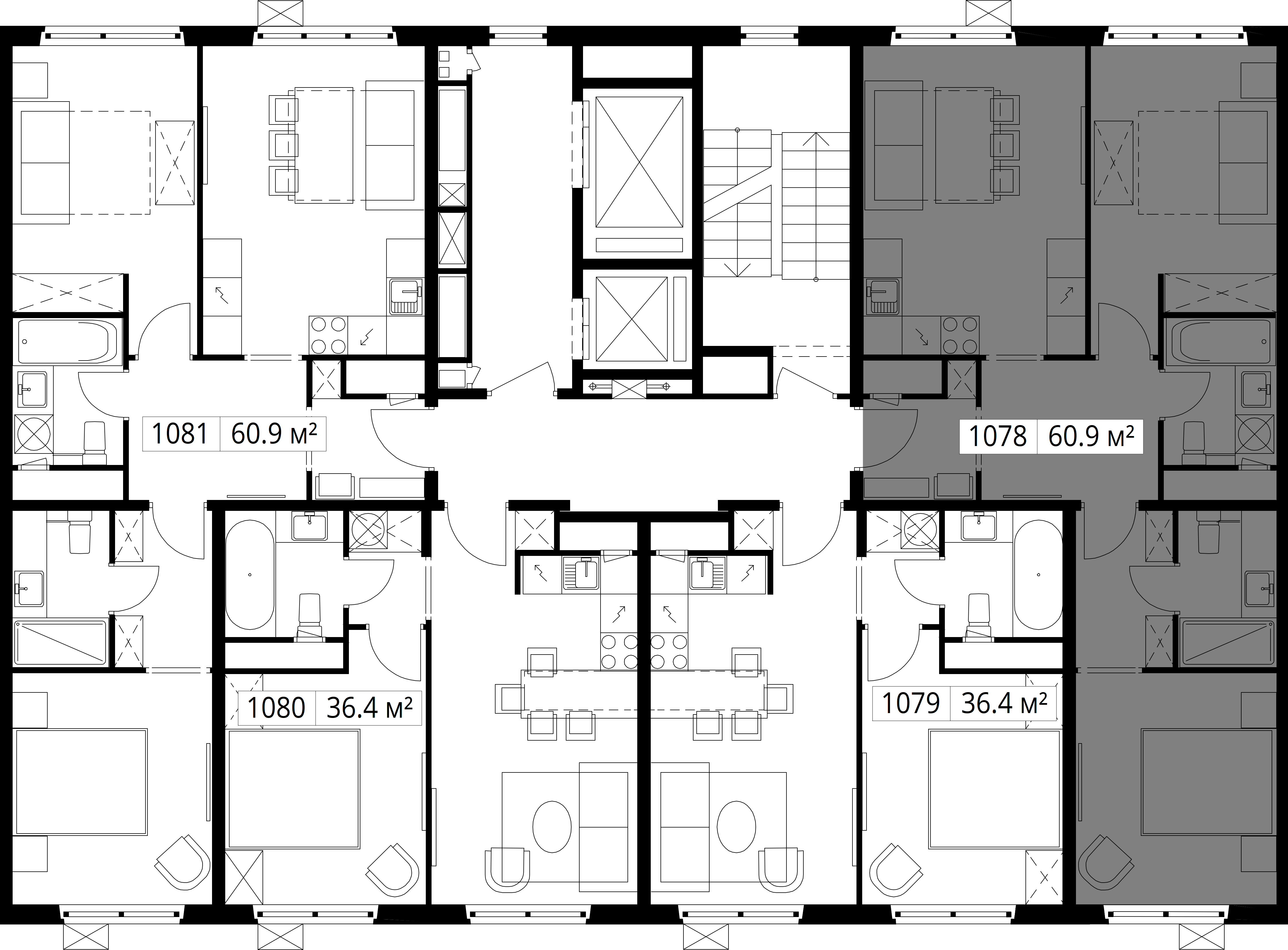 В проекте широкий выбор продуманных и функциональных планировок для разных сценариев жизни. Мы предусмотрели мастер-спальни с собственной ванной и выделенной зоной для гардероба. Также есть варианты с компактной кухней-нишей, постирочной и сквозным санузлом.