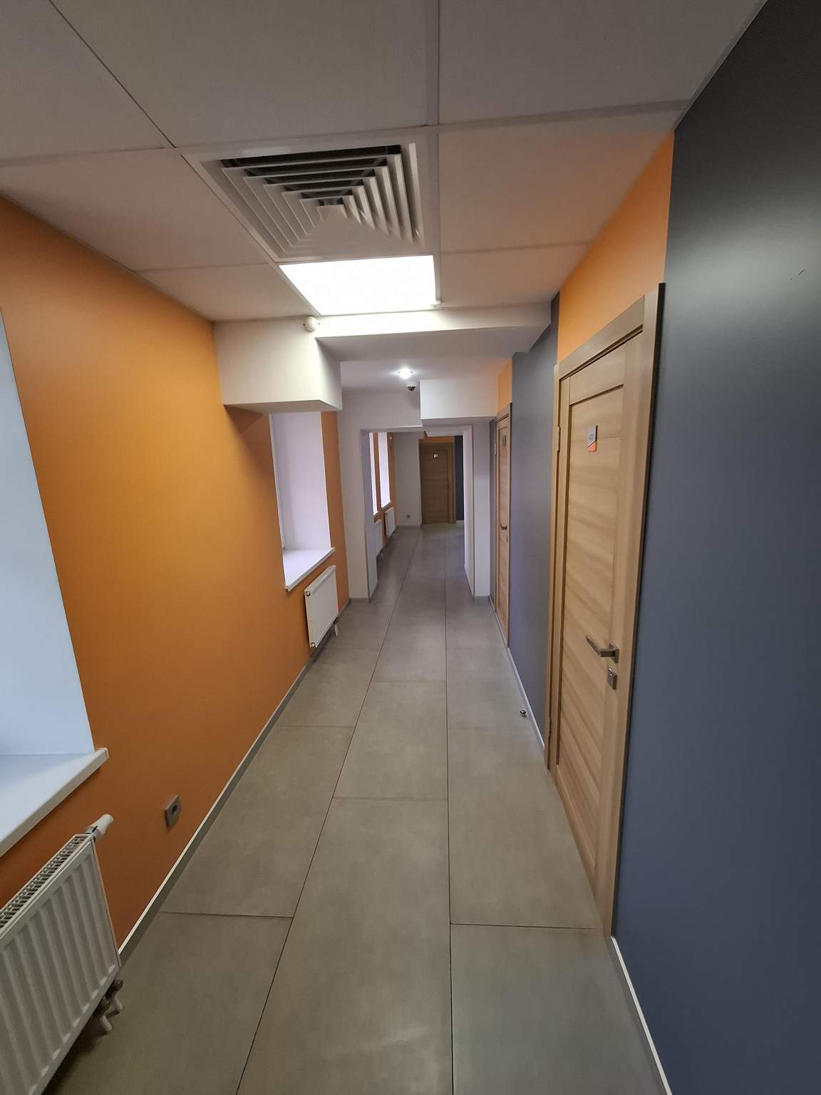 Здание построено из кирпича и отделано снаружи вентилируемым фасадом, внутри отштукатурено и покрашено, на полу плитка, потолки подвесные.