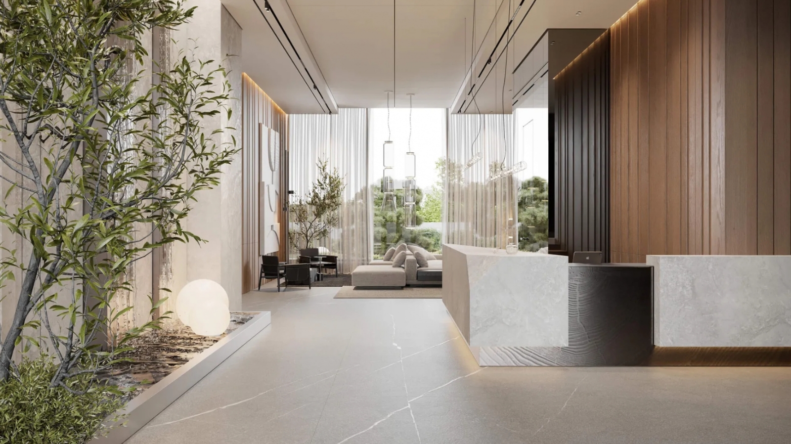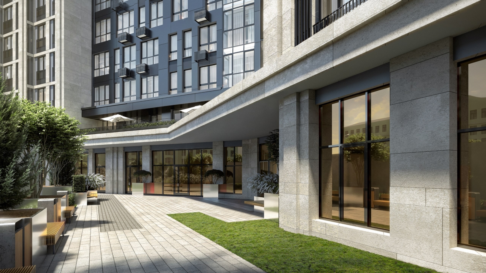 Две 16-этажных секции дома соединит лобби с дизайнерской отделкой. Оно станет стильным общественным пространством и главным входом для жителей, также ведущим в скрытый от посторонних глаз приватный внутренний двор.