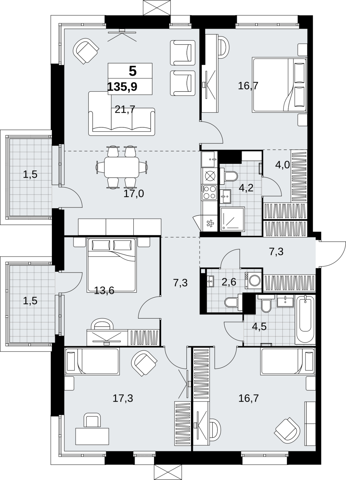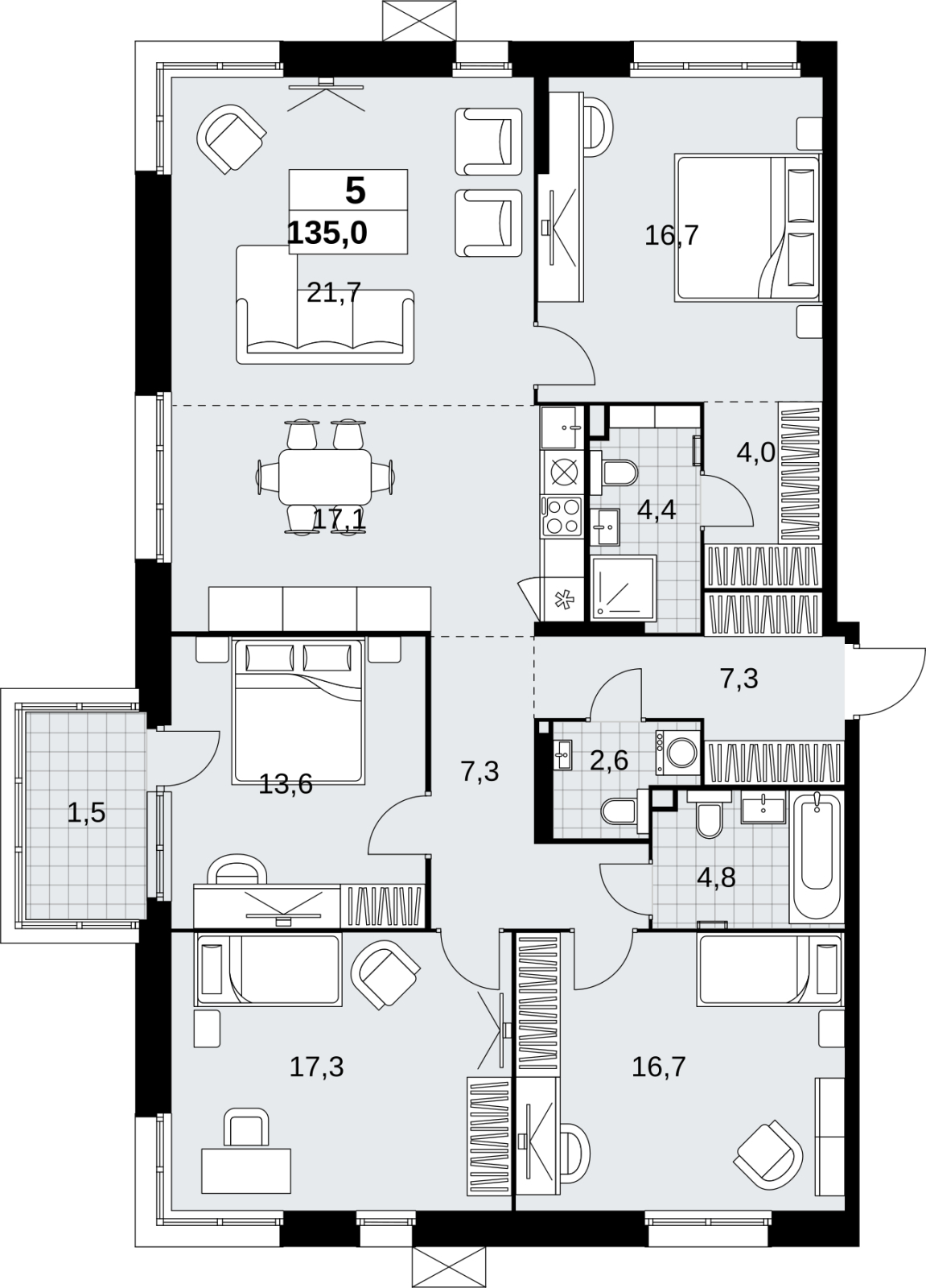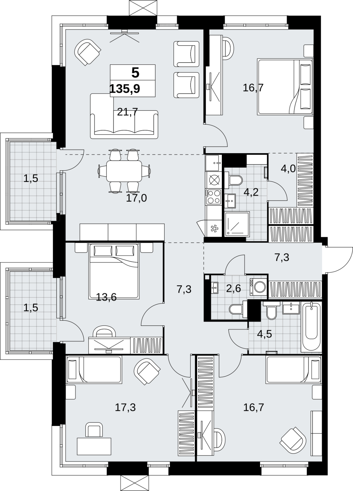 Купить 4к квартиру 103 м² в ЖК "Дом на Зорге"