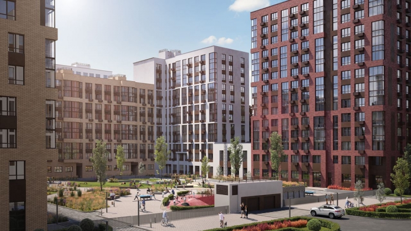 Микрорайон возводится в уже сложившемся районе Новой Москвы, где для детей уже построены детские сады и школа, а для взрослых работают магазины, банки и кафе. (AQID02539880)