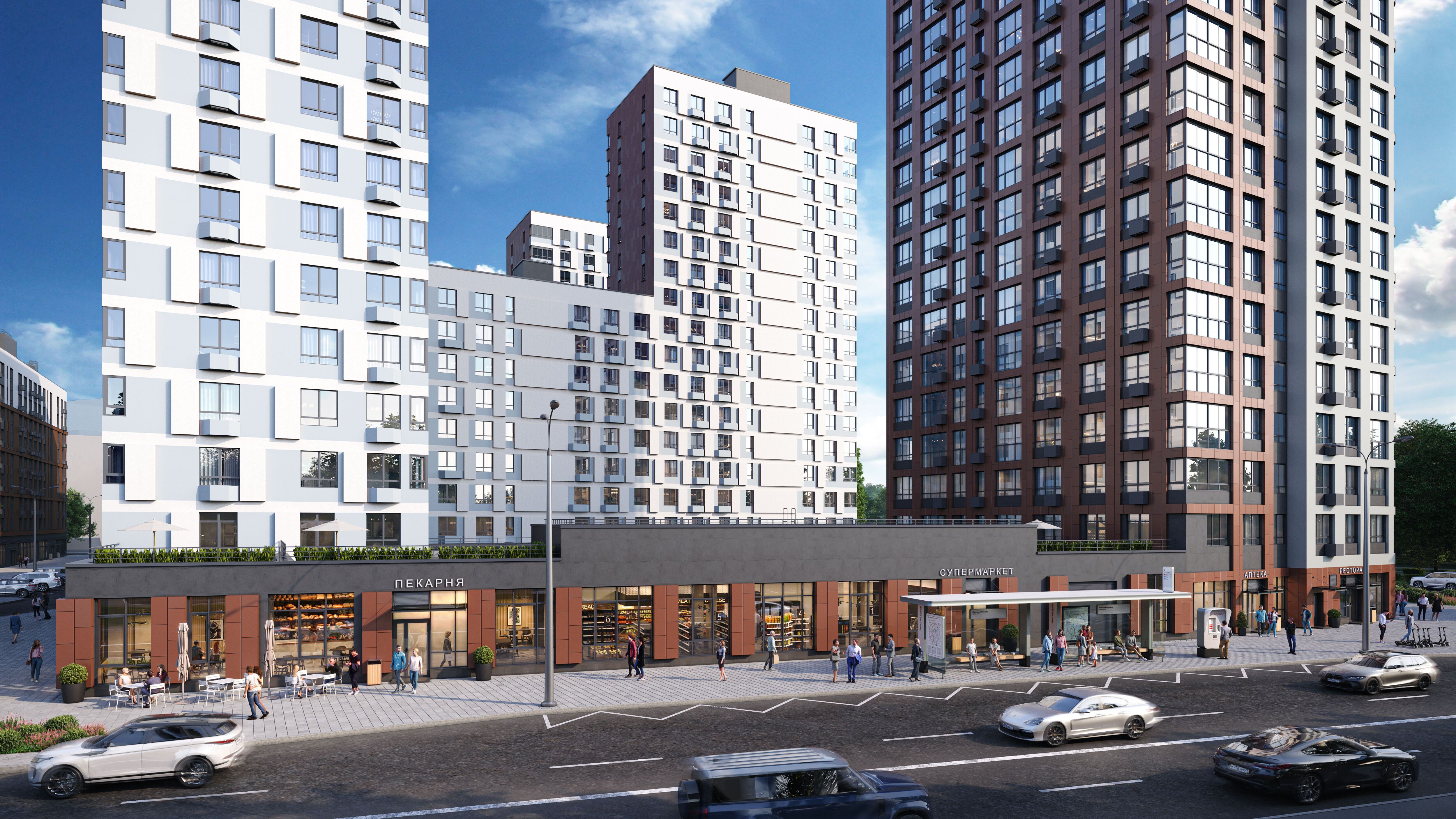 По соседству расположены заселённые районы с уже действующей коммерческой инфраструктурой, школами и детскими садами, в 5 минутах на автомобиле — гипермаркет «Глобус».