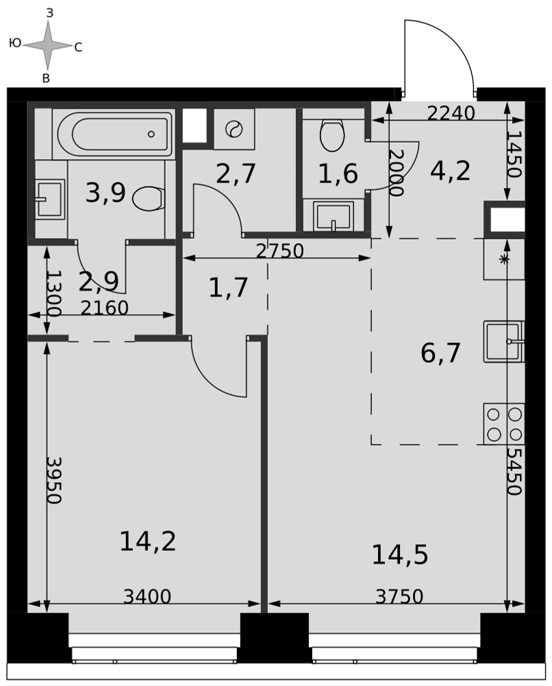 Продается евро двух-комнатная квартира, состоящая из спальни и просторной кухни гостиной.
