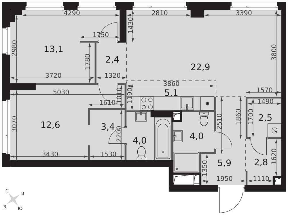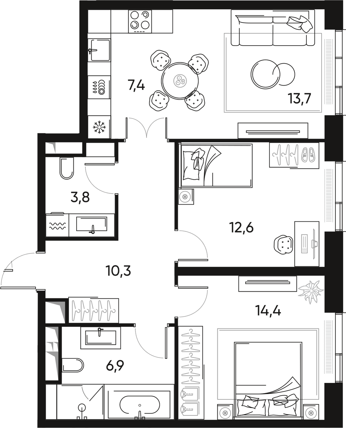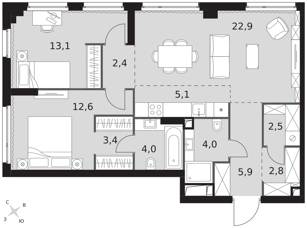 Продается 3-к квартира площадью 100.8 кв.м. на 20-м этаже 29 этажного дома в ЖК "Very" от ГК ОСНОВА.