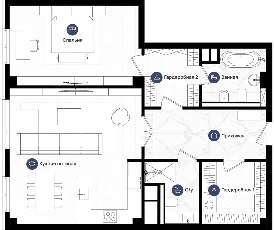 Дизайнерские лобби, подземный паркинг с доступом на этаж, функциональные кладовые, система "умный дом".