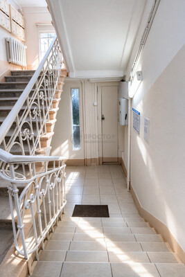 Подъезд встречает атмосферой старой Москвы: кованые перила, высокие оконные проёмы, всего две квартиры на этаже — никакой суеты, только пространство и воздух.
