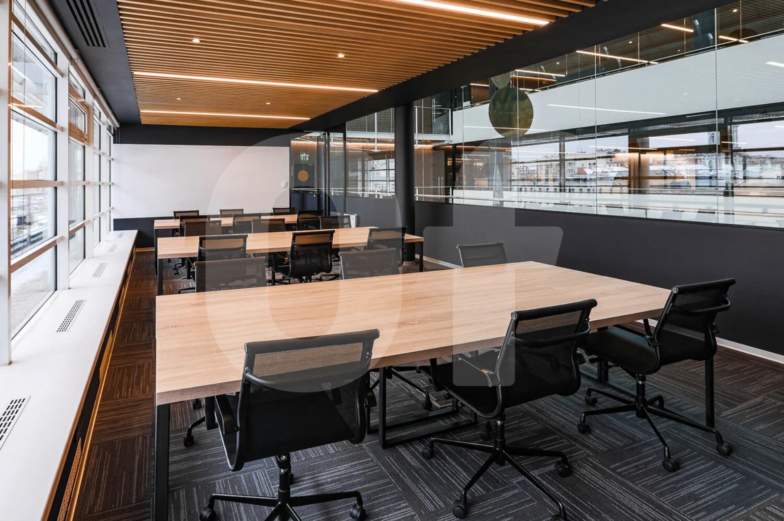 На 4 и 5 этажах располагаются террасы с великолепными видами на исторический центр Москвы. В подвале располагается электрощитовая и тепловой пункт. На 1 этаже находятся 5 переговорных комнат, кофепоинт, лаунж зона, конференц зал на 65 мест и ресторан Лето Италия. На всех остальных уровнях смешанная планировка, с кабинетами и зонами open space, кухнями, гардеробными и группами санузлов (с разделением на М/Ж). Текущая рассадка на 538 р/м. Здание сдано в аренду целиком моноарендатору. Договор аренды действует до 2029 года.